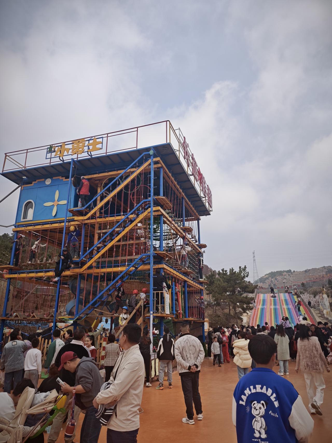 海阳花花山无动力亲子乐园,别看名字土土的,服务人员全是村里的大叔大妈,30块钱门票真心值! 光一个小勇士攀爬(市里万达我记得是70)门票就值了,还不限次数,更别说还有其他大型滑梯、各种攀爬、跳床、彩虹滑道随便玩,还有萌宠乐园各种兔子、鸵鸟、孔雀、山羊等,还可以爬爬山。 不得不说海阳的消费就是低,午餐吃的花花山大食堂,四个菜加米饭馒头30多块钱,烤地瓜、关东煮都很便宜。里面也有个别收费的项目例如套圈、飞车什么的都是10块钱门票。 整体感觉就是孩子大人玩得都很开心,花费不心疼,一种挣刀花人民币的感觉。如果你们离得不远,真心可以带孩子过去玩。[偷笑]