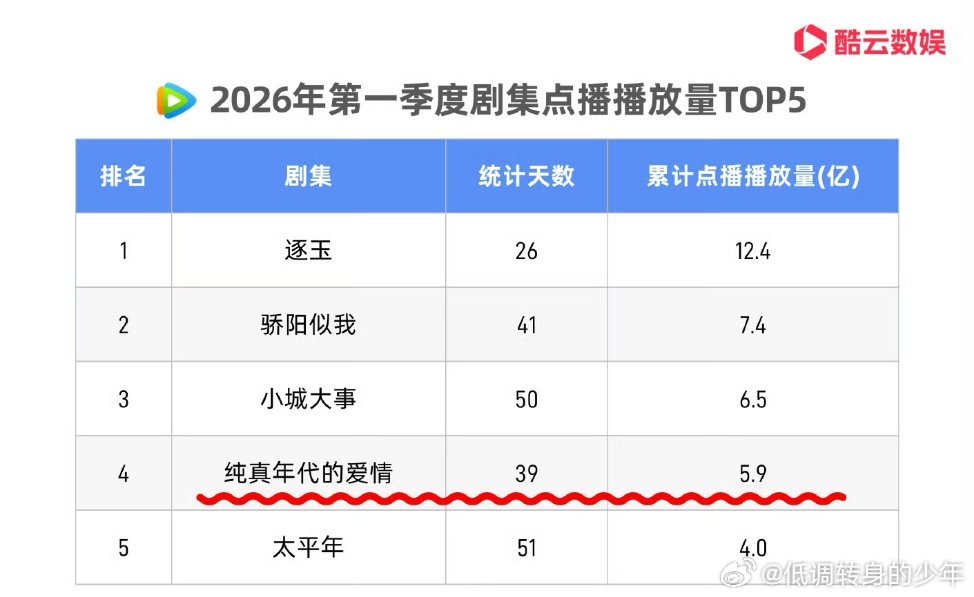 陈飞宇方穆扬腾讯第一季度剧集点播播放量陈飞宇《纯真年代的爱情》上榜TOP4累计点播播放量5.9亿恭喜🎉🎉🎉陈飞宇方穆扬 成为了3月最热年代剧角色🏆