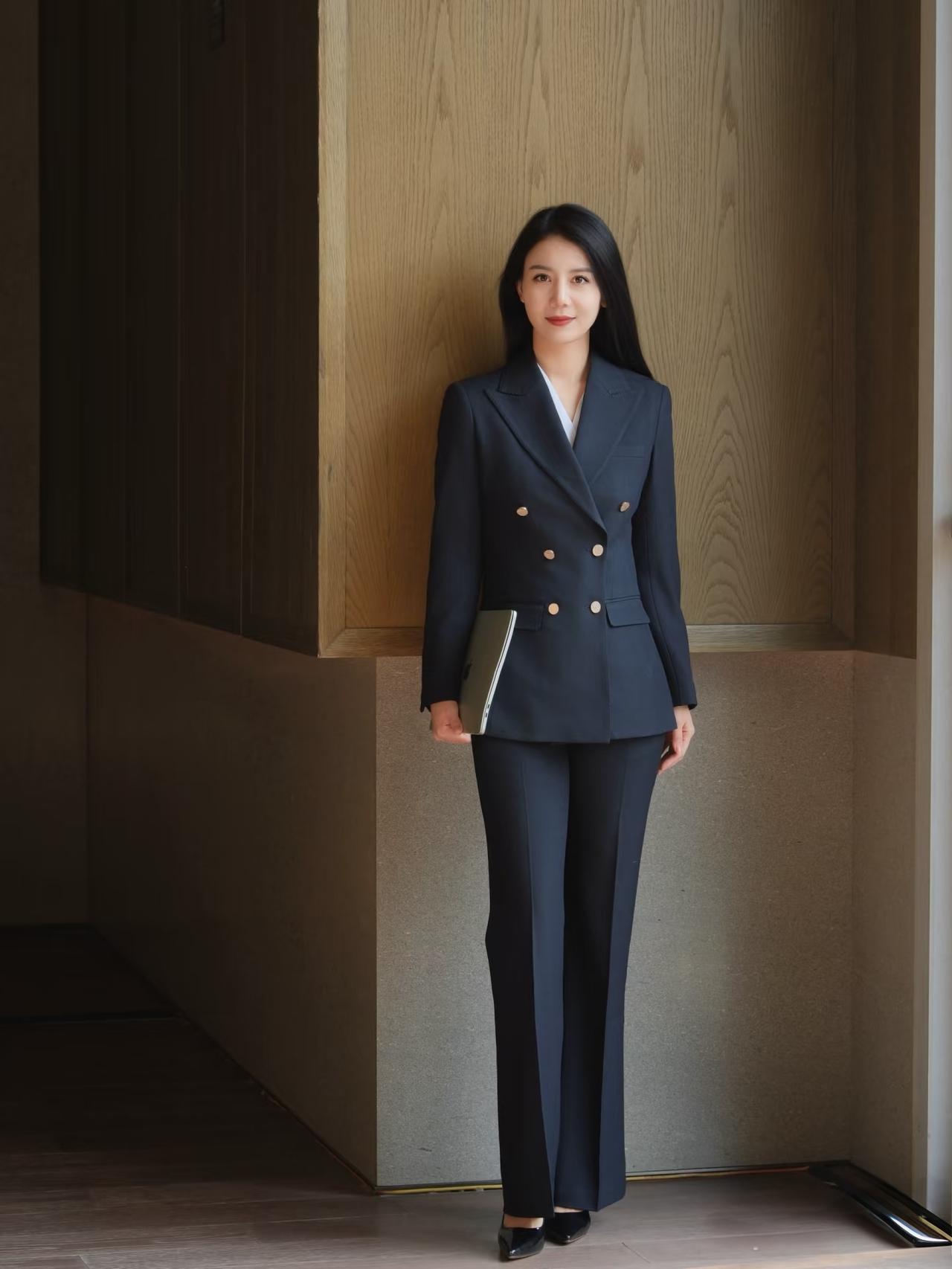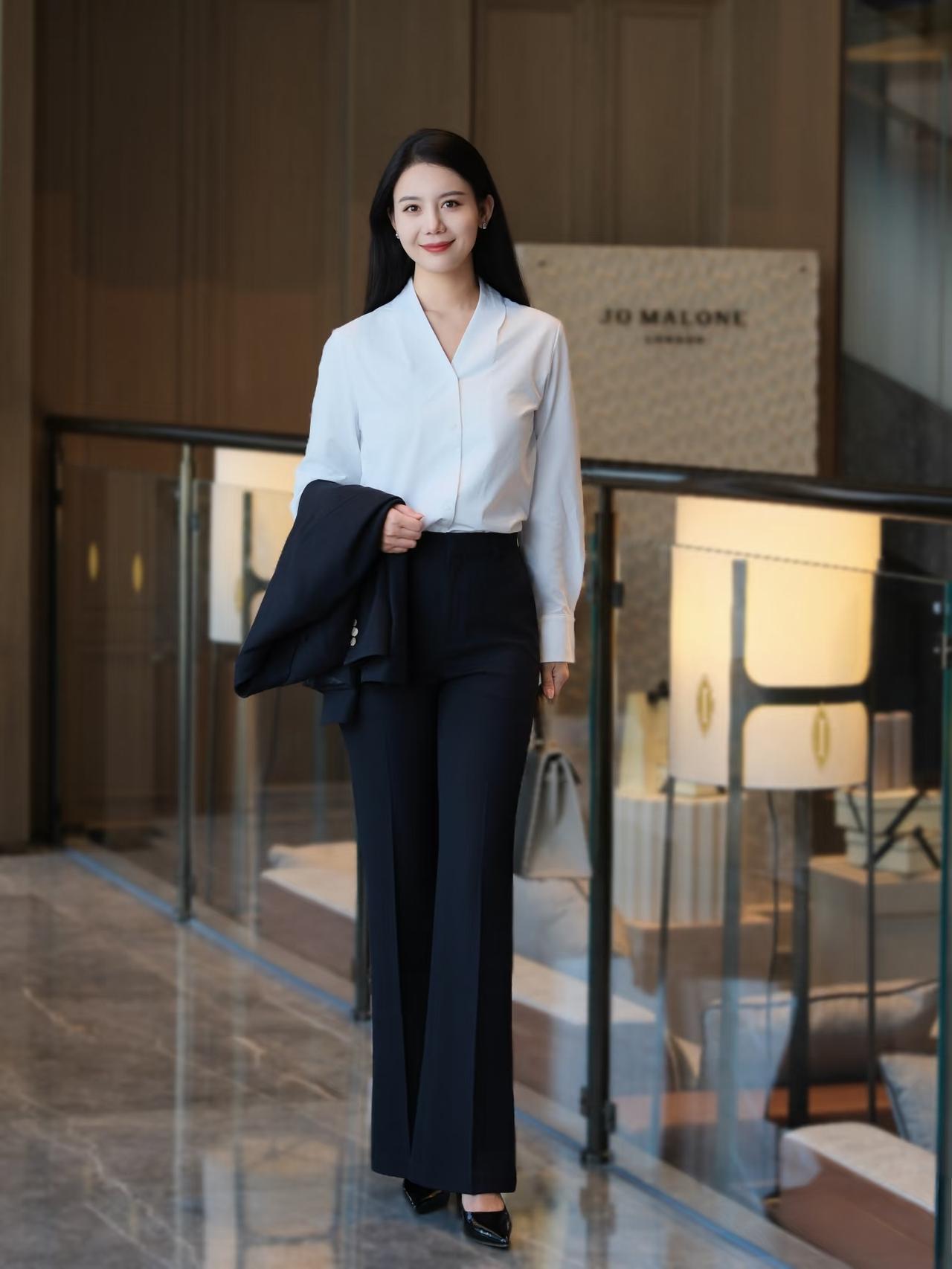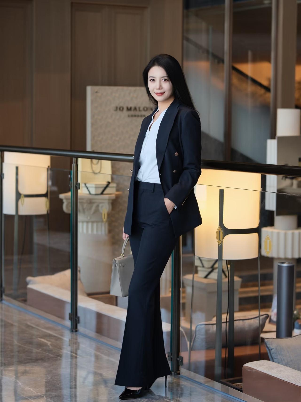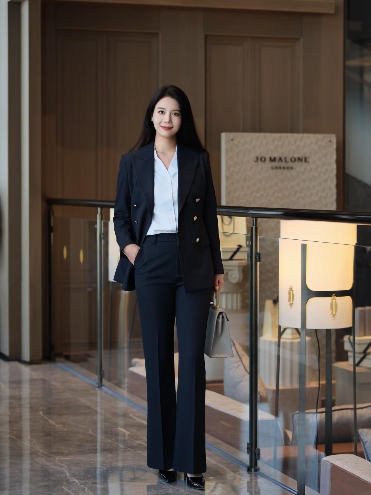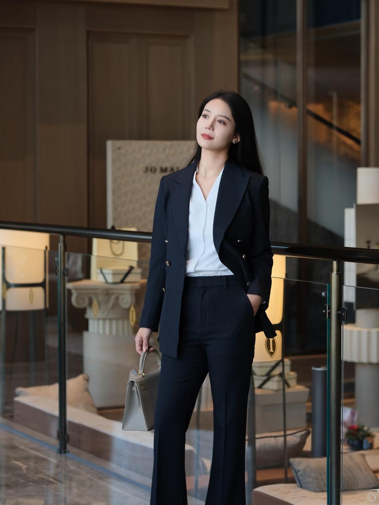 职场女性怎么穿着显得干练一身黑色毛领套装,勾勒出职场女性的利落线条。修身剪裁贴合