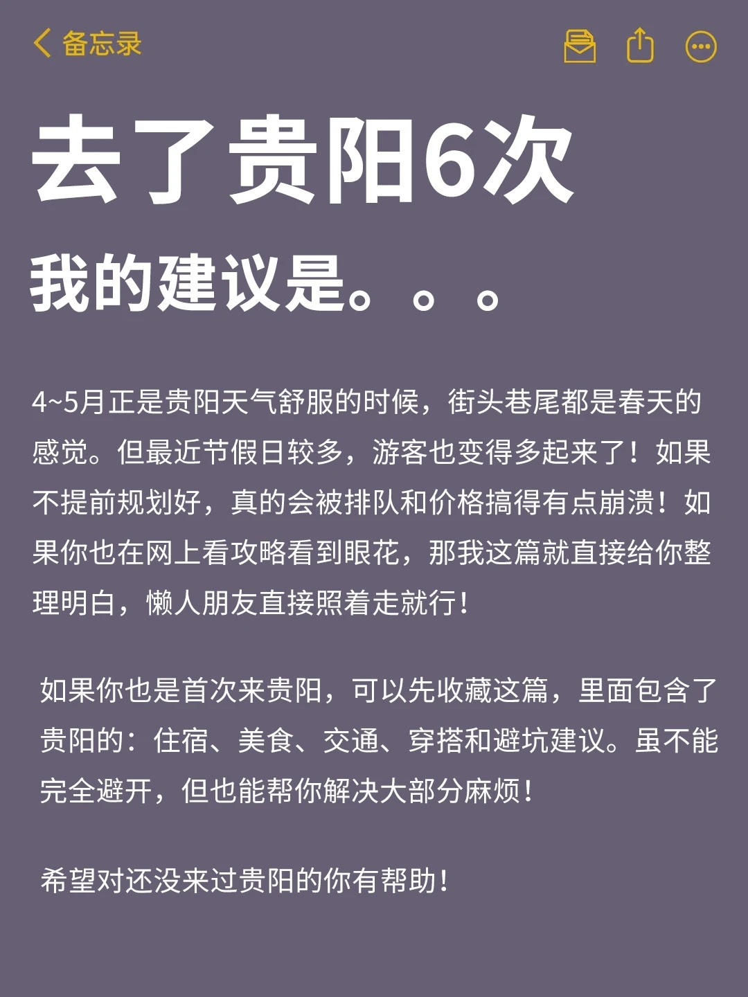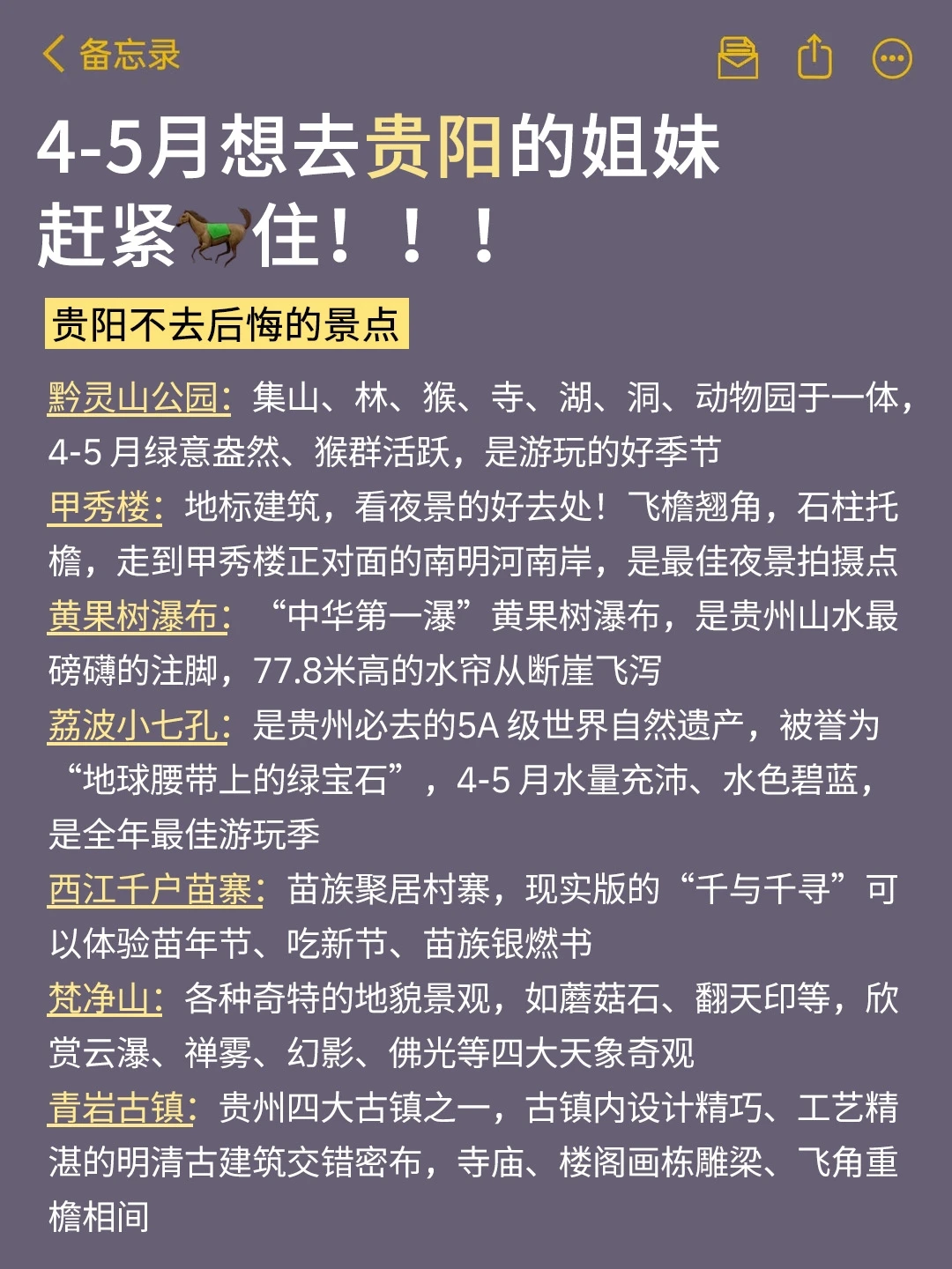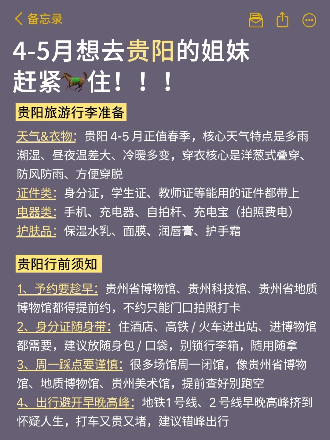 姐妹们谁懂啊!来贵阳玩了6次,每次都因为带错衣服想抽自己!4-5月的贵阳昼夜温差能差出一个季节!整理了这份保姆级攻略,计划五一去贵阳的朋友快来抄作业叭~