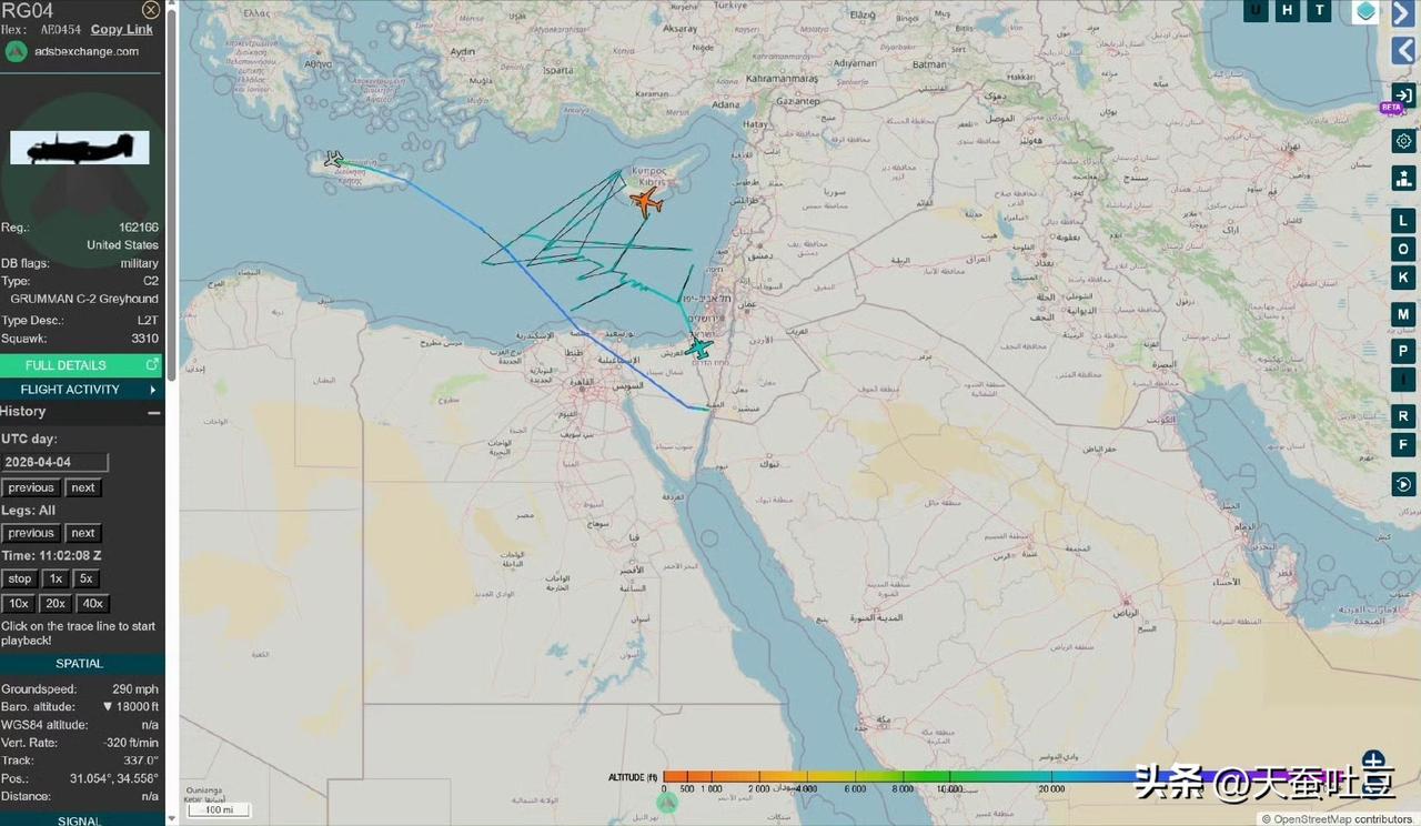 从两架C-2A的飞行活动判断,4月4号,美国海居福特号航母(CVN-78)位于克里特岛东南方向,疑似正驶向苏伊士运河。 同时,C-2A在以色列南部与福特号之间往返,福特号前往红海的可能性相对大一些。 ➤真的要逼着一等人炸弹药库才肯罢休吗?福特号航母编队 福特号航母故障