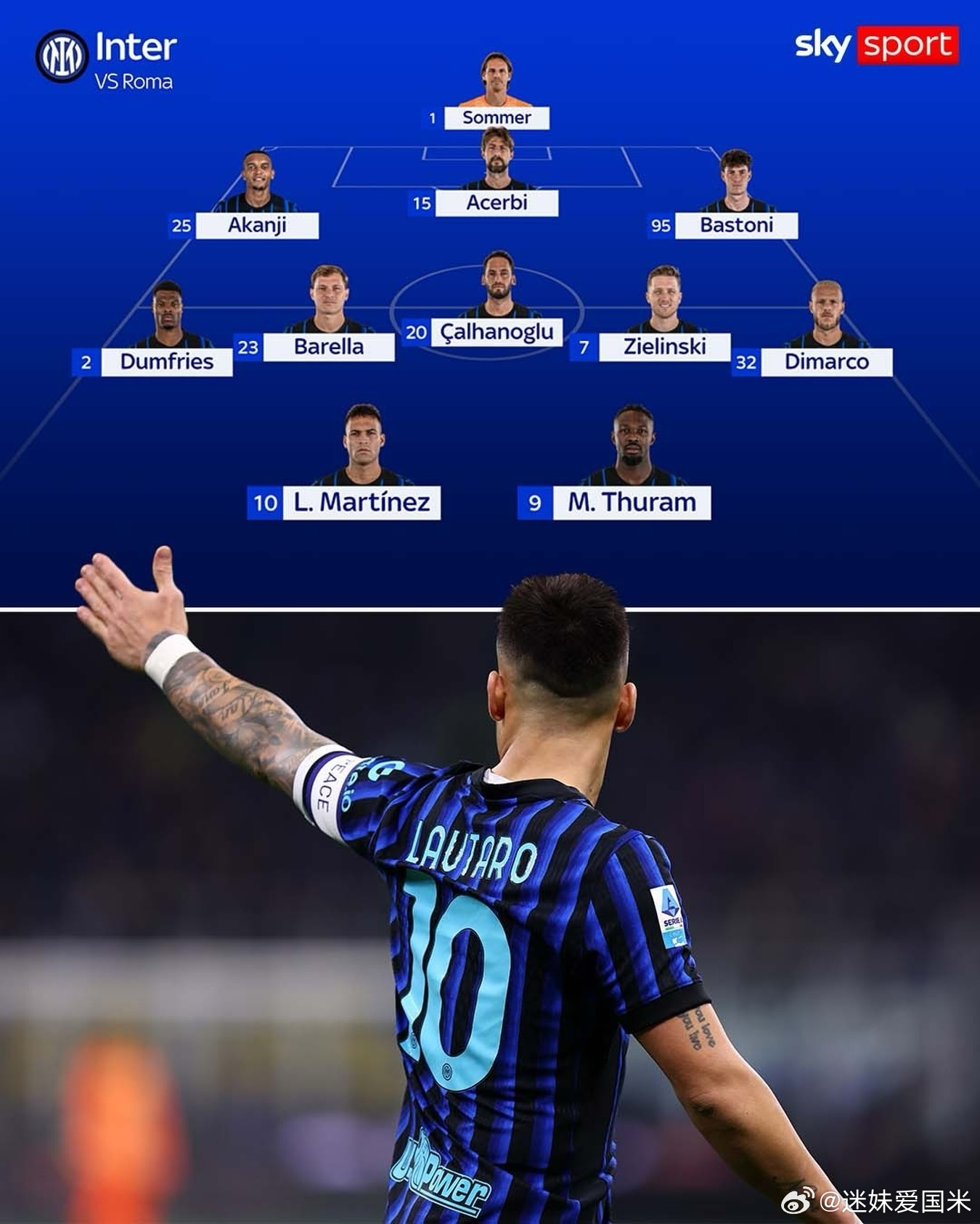 天空体育更新了国际米兰首发阵容,与米兰体育报预测一致。加油呀,到了拼的时候啦🔵⚫😘