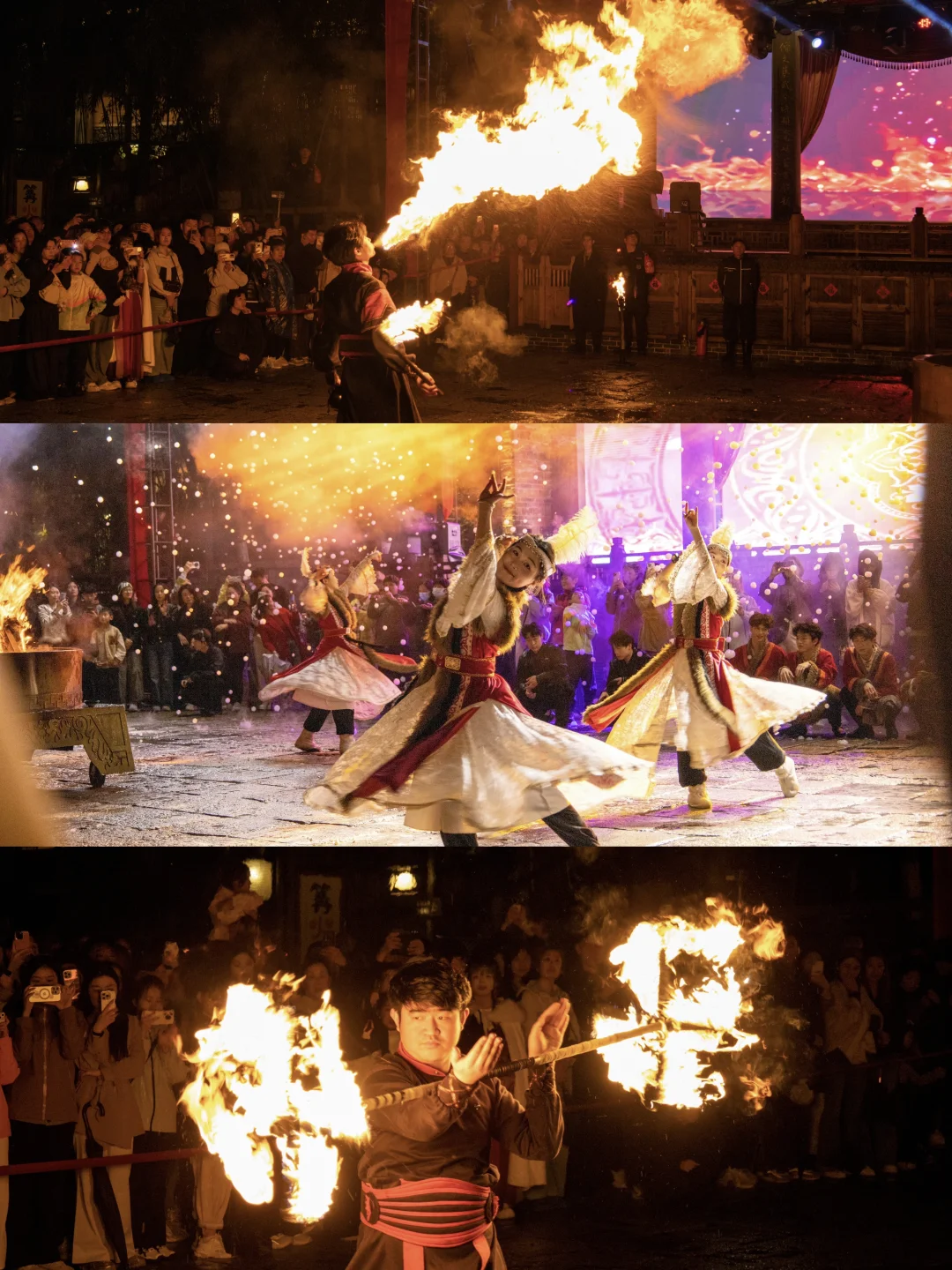 ✔️《望仙燃梦》户外广场舞台秀,大家一起围着篝火互动狂欢,很有氛围感!