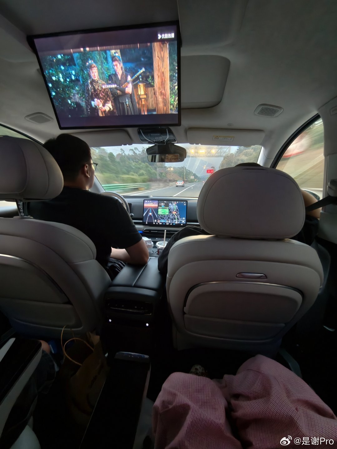 长途还是MPV舒服,坐着真宽敞,座椅按摩一开,小桌板一放,零食奶茶搁上边,吸顶屏