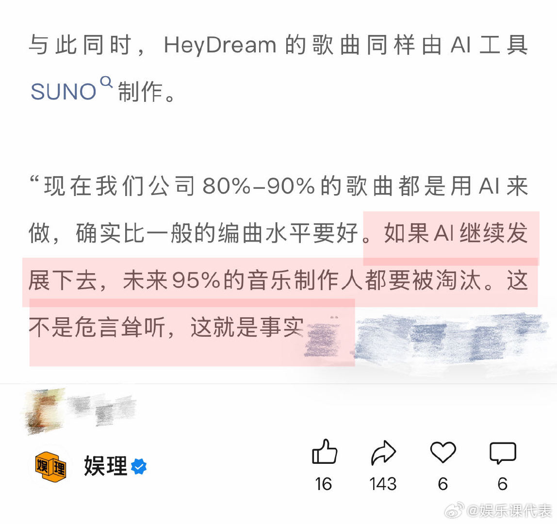杜华谈真人偶像不会被AI取代 杜华说AI把过去的打法都颠覆了 AI让乐华公司80%-90%的歌曲制作方式都改变了!杜华说AI确实比一般的编曲水平要好,未来95%的音乐制作人都要被淘汰。这不是危言耸听,过去依赖音乐制作人的打法已经被颠覆,整个音乐制作的生态系统将被重构!