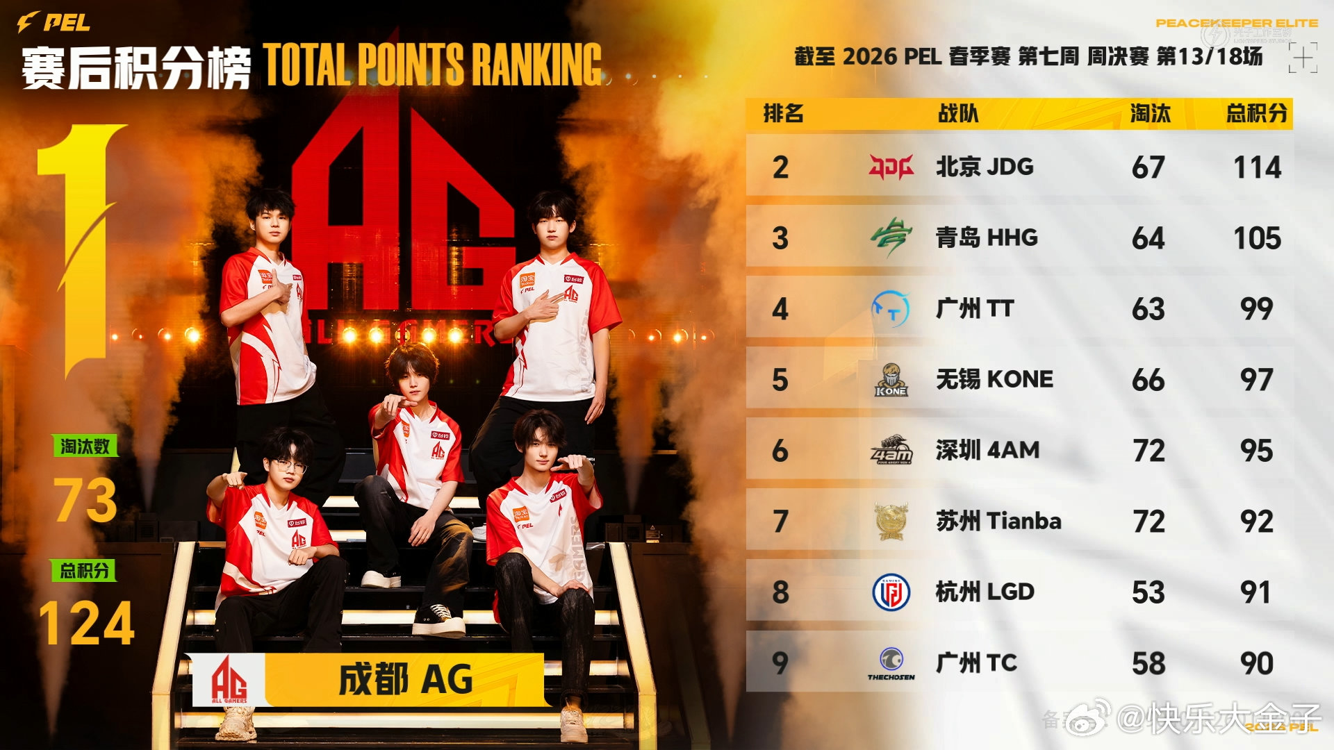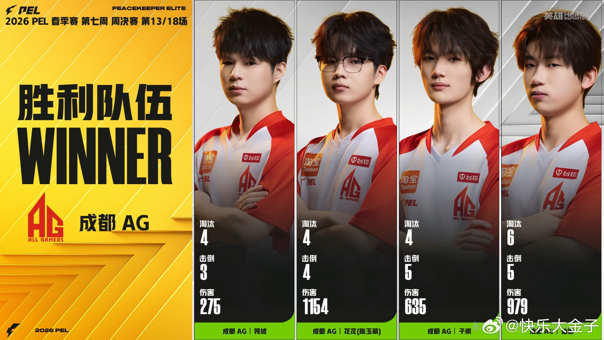 AG18淘汰开门红 冠军夜AG来劲了第一局上来18淘汰,直接上到积分榜第一了。AG和平精英
