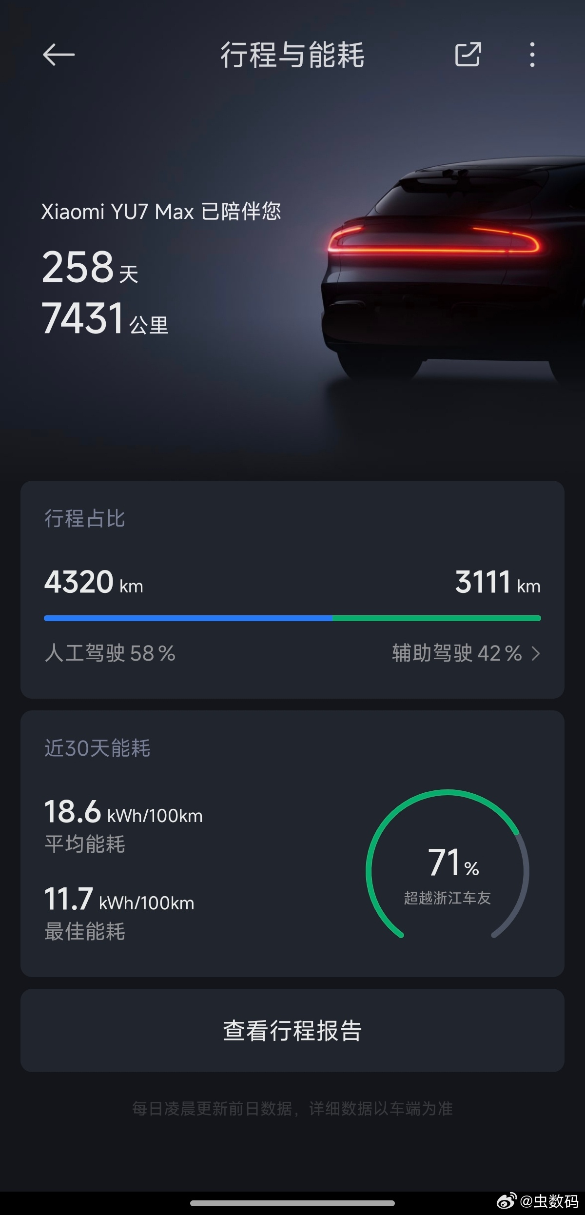 额,我的小米YU7 Max 电池健康度还有 99.68%。