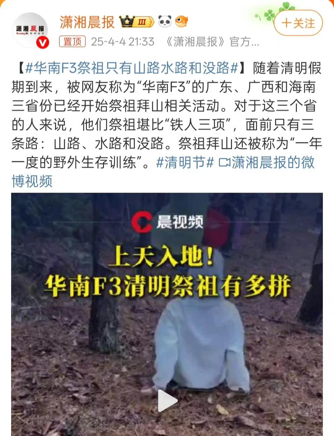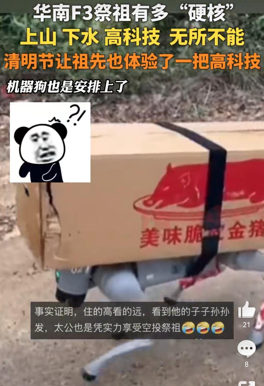 “华南F3”祭祖能有多硬核,只有山路水路和没路!又到了大型纪录片《太爷你在哪里》? 上山下湖高科技无所不能,为了祭祖拜山,不管面对什么困难,都要去 。有网友居然用机器狗、无人机吊运祭品上山,让祖先们也体验了一把高科技。硬核祭祖的背后,是对长辈们的纪念和家族亲情的延续。你怎么看呢?#华夏传统祭祖# #南方祭拜#
