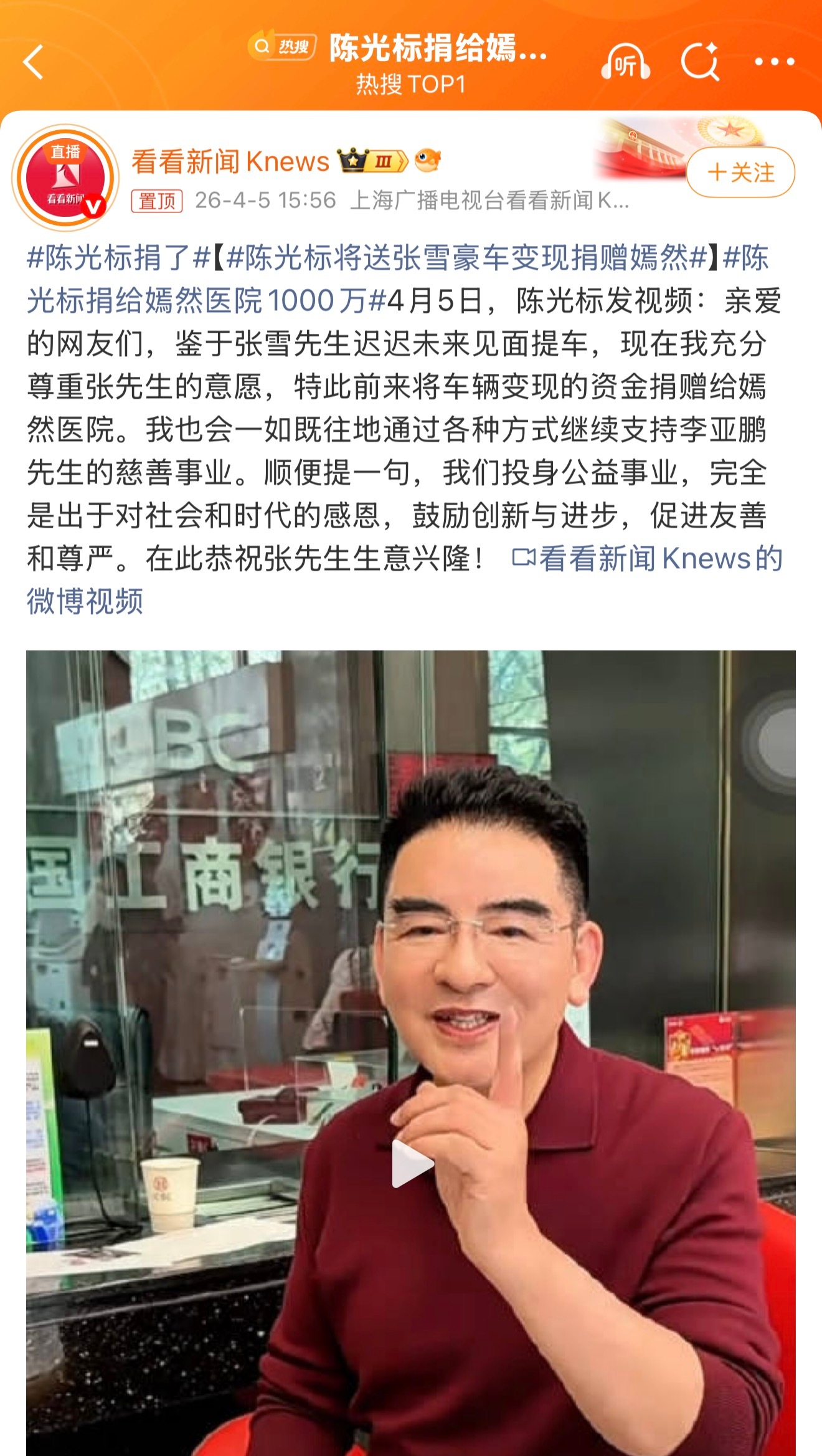张雪赢麻了你不是蹭流量吗,那就让你出出血,不过陈光标也是够可以的,真的捐的1000万出来,真男人。陈光标将送张雪豪车变现捐赠嫣然