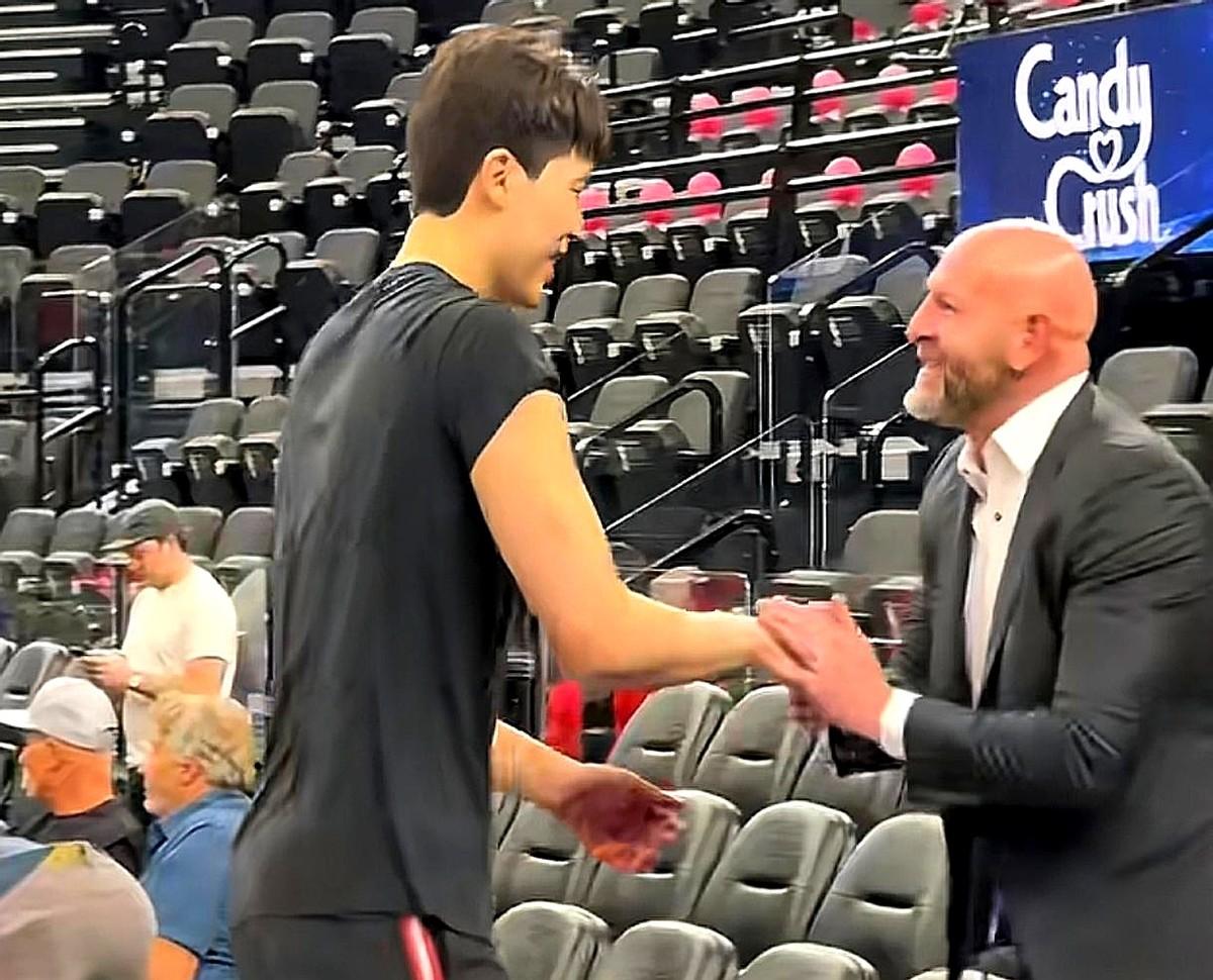 杨瀚森这小子,球商高,情商更高! 开拓者队内合练,总经理乔·克罗宁在场边看。杨瀚森眼尖,训练间隙第一时间就跑过去,主动伸手问好。 这一个动作,直接把总经理看乐了,眼神里全是欣赏。人家老早就关注他两年了,看中的就是这股机灵劲儿和天赋。 从试训到签约,再到下放发展联盟单场砍31分,小杨一直很主动。报到跟人握手,开发布会也积极互动,完全不像个新人。 这孩子,真不是只会打球那么简单。