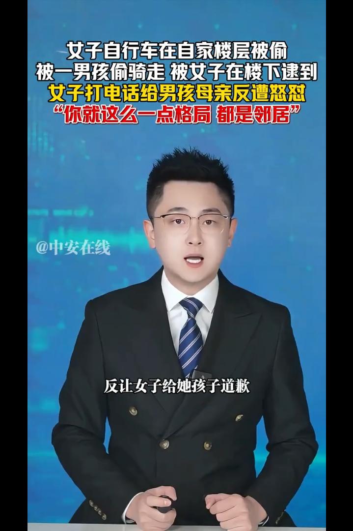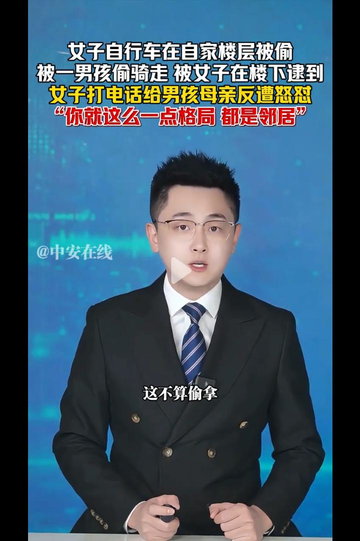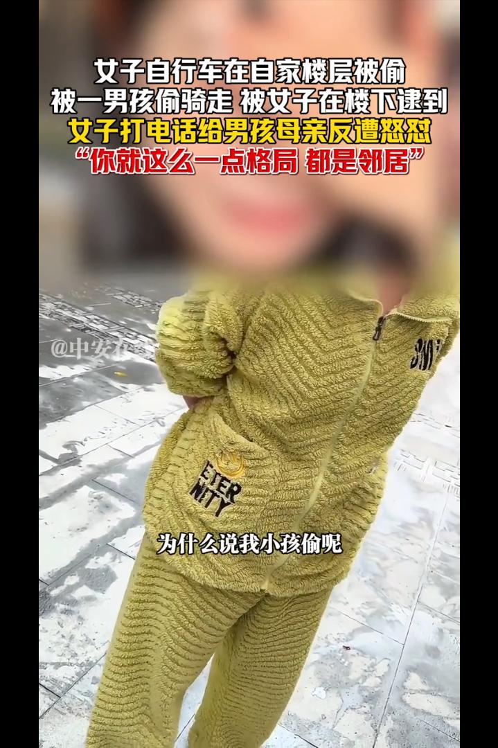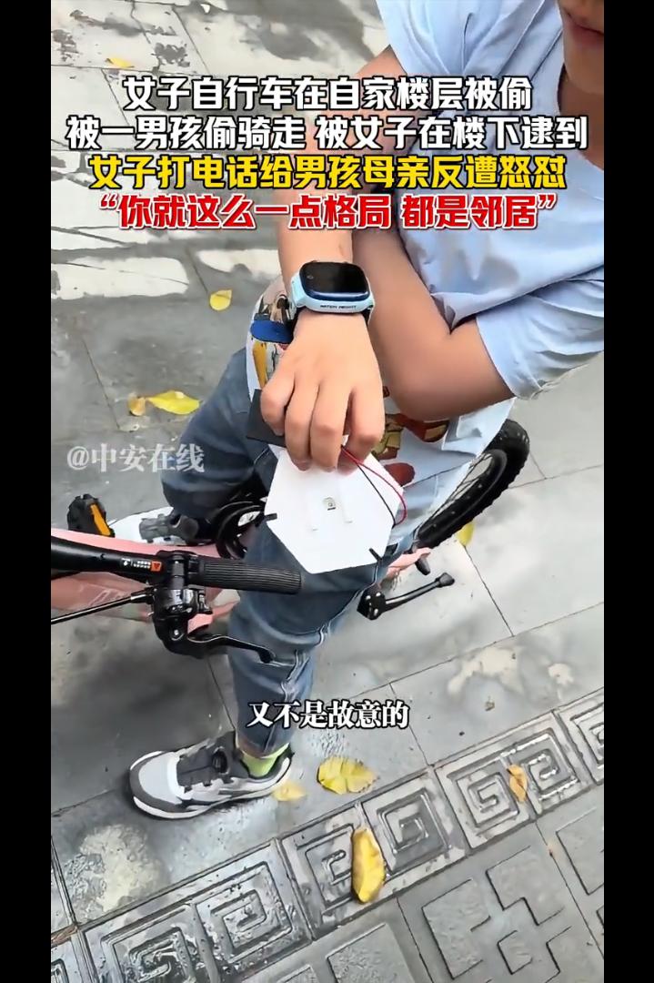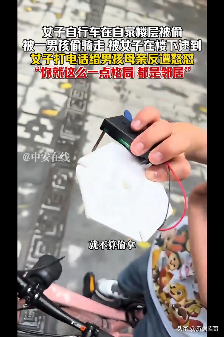 广东,女子自行车在自家楼层被小区一男孩偷骑走,一天后被女子在楼下逮到,女子打电话给男孩母亲反遭怒怼:你就这么一点格局,我们都是邻居,这不叫偷!还说是女子污蔑他儿子,竟提出让女子给她儿子道歉!网友:这不叫偷那叫什么! 广东某小区,一位女子的自行车在自家楼层晚上被人骑走。 第二她在楼下,正好撞见一个十来岁的男孩骑着她家的车在小区里兜风。 女子当场拦住男孩,和小孩子确认情况后,让男孩拨通了他母亲的电话,想讨个说法。 你们家小孩子在我们架空层偷拿了我们的自行车在骑........ 结果电话那头传来的声音,让她彻底傻眼—— 一个小孩子骑了一下自行车怎么能是偷呢?那边说道。 女子听了有些上火,说道:不算偷拿,你家小孩从昨天晚上拿走一直到现在,我们不找的话,这个自行车是不是就归你们了! 你说话的时候要好好用词,你报警就报警,别搞这些XXXXX的什么法律词,我们是邻居,又是个小孩子,又不是故意的。男孩母亲回怼道。 谁是你邻居呀!我们不同栋的!女子回怼道。 眼见自己孩子被抓到,对方不依不饶的,一会孩子的母亲下了楼。 女子要求对方给自己道个歉,可是孩子母亲却说道:为什么说我小孩子偷呢?就是因为小孩子骑了一下你家的自行车,你就要去报警,你就这么一点格局,那你就去报吧! 一字一句,理直气壮,仿佛偷车的是这位女子,而不是她儿子。还让女子给她的儿子道歉。 女子无奈报了警,可是到了派出所,孩子母亲依然不肯认错道歉,警方决定将孩子的情况通报给学校,可是孩子母亲依然觉得无所谓,你们随便。 女子将视频发到了网上,引发了网友热议,有的网友说,这个世界要疯了,昨天看到酒店服务员提醒孩子不要玩旋转门,危险,结果要当着警察叔叔面向孩子道歉! 也有的说,小孩贪玩偷拿小朋友玩具是不对,双方大人态度都不对。一方纵容小孩还狡辩,一方确实有点小题大做心胸狭窄。 还有的说,这种母亲能教出好孩子吗?孩之错,母之过,慈母多败儿。 我想说的是,未经允许拿走别人的东西,这就叫偷。小孩子不懂事,那么大的一个成年人也不懂事吗? 最怕的不是孩子犯错,而是家长觉得“犯错没什么大不了”。 孩子拿了别人的东西,家长第一反应不是教育道歉,反而护短、倒打一耙,说别人小题大做,这根本不是爱孩子,是在亲手毁掉孩子。 家长不认错、不道歉,还强势嚣张,只会让孩子觉得“拿别人东西没事、我妈会护着我”,长大只会越来越无法无天。 真正的教育,是让孩子知道对错、懂得尊重别人的东西,而不是用“孩子小”当借口,把自私和蛮横当成理所当然。这样的家长,养不出有教养的孩子,只会养出一个没有底线、迟早闯大祸的人。 母亲可能觉得自己是在“保护”孩子。可是你却不知道你的护短和溺爱会让孩子走上歪路,因为犯错了背后有保护自己的妈妈。 这才是最可怕的地方。 有句话说得很好:每一个“熊孩子”背后,几乎都站着一个“熊家长”。 孩子可以不懂事,但大人不能不懂理。今天孩子偷骑别人的车,家长觉得“没什么”;明天呢?后天呢? 格局从来不是纵容,更不是拿人情绑架道理。 真正的格局是:错了就认,认了就改。