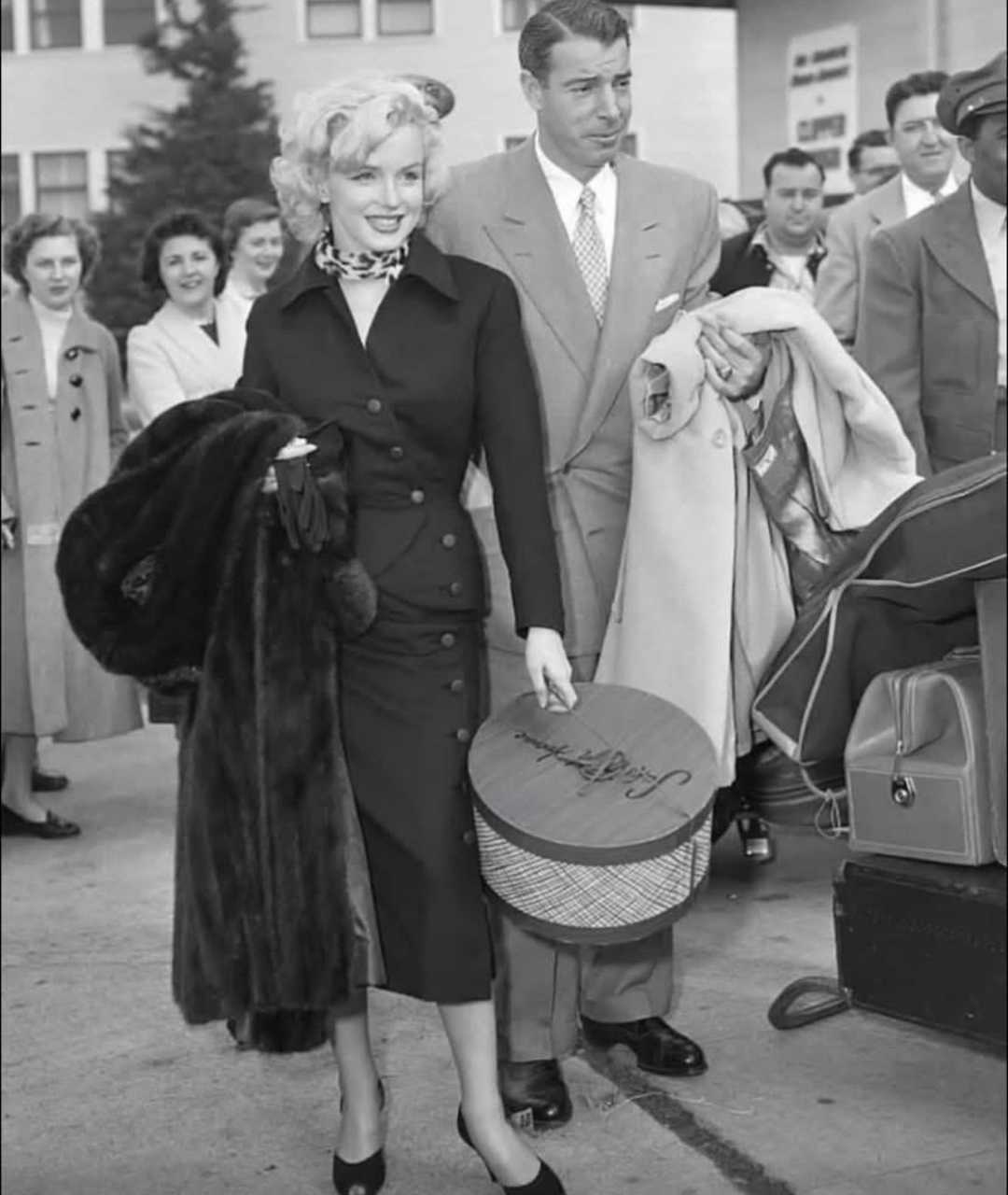 【来自投稿】1954年 玛丽莲·梦露和新婚丈夫乔·迪马吉奥从旧金山出发,准备前往日本度蜜月