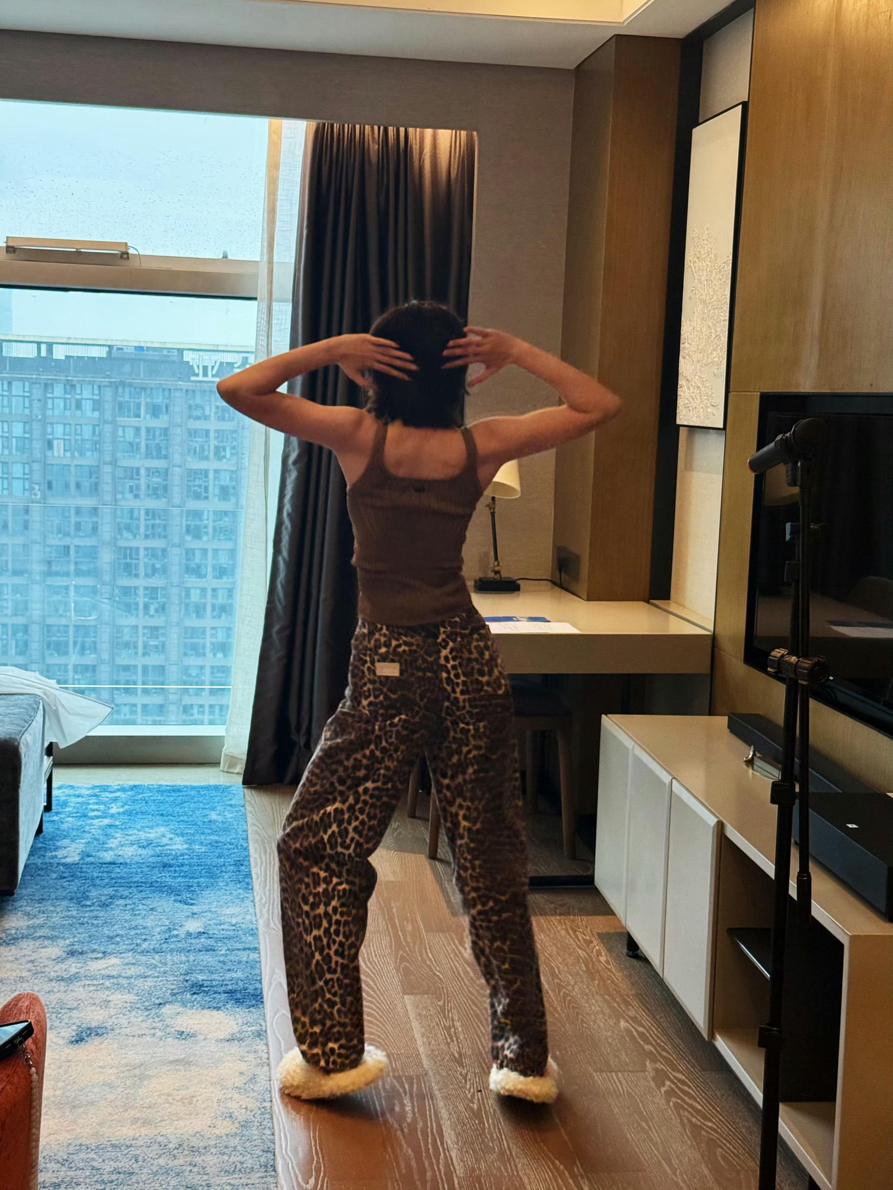 周冬雨穿着睡衣周游世界。