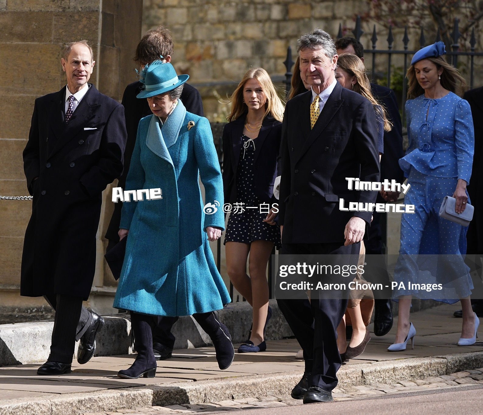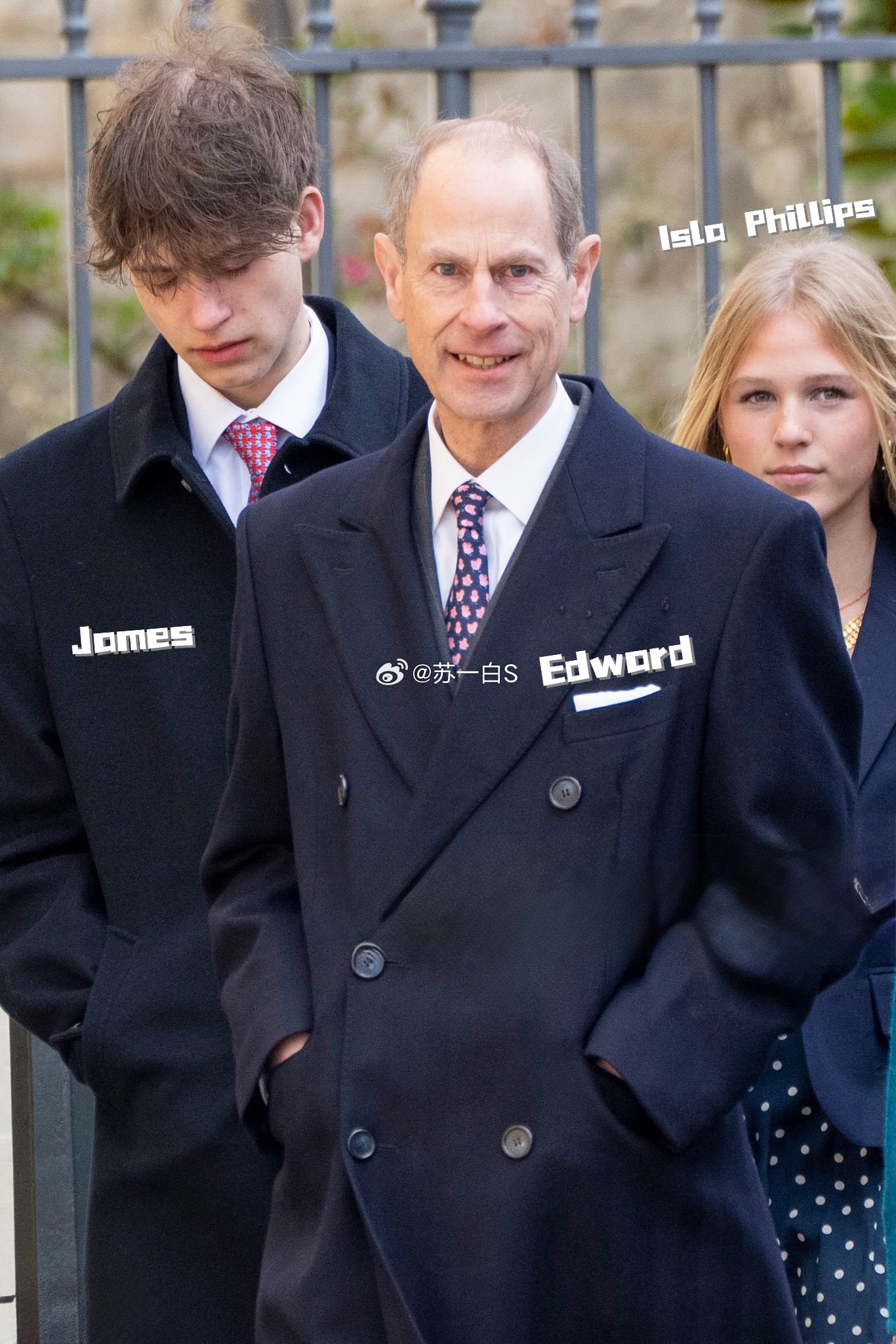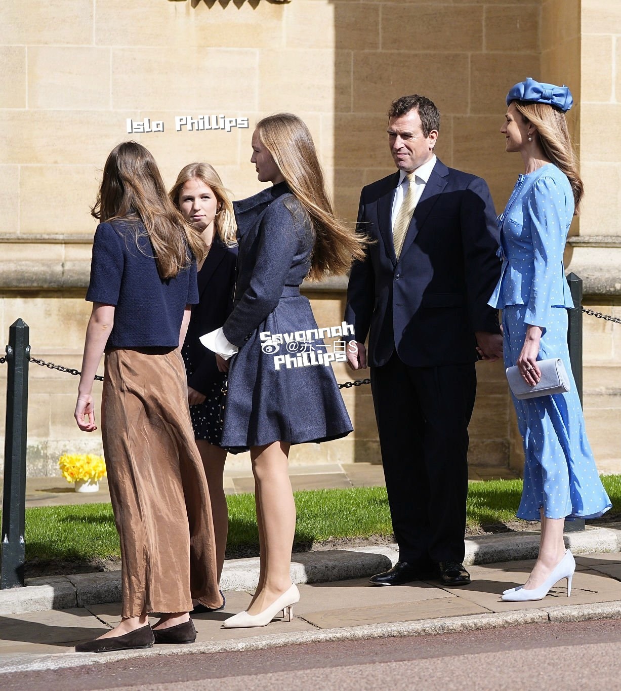图六图七图八:安妮的儿子Peter Phillips带着即将完婚的未婚妻Harriet Sperling,女方在前一段婚姻里生的女儿Georgina(15岁)也一同现身,和Peter Phillips的两个女儿Savannah(15岁)和Isla(14岁)走在一起👇