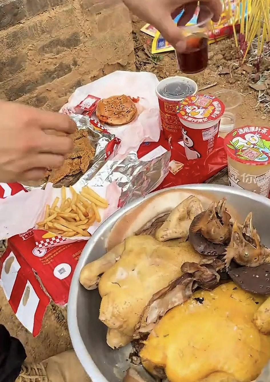 清明节之际,一大家子年轻人回老家祭祖,但让人没想到的是,他们拿去祭拜老祖宗的祭品,并非传统的什么鸡鸭鱼肉,或是水果啥的,而是如今流行的新潮食品,如奶茶、汉堡、炸鸡、可乐等。视频可见,这老祖宗坟前摆满了炸鸡汉堡,大家先是祭拜了老祖宗,让老祖宗先吃,然后他们再一起享用这些美食。还别说,带着这些特殊祭品祭拜老祖宗后,大家还真在老祖宗面前享受出了野餐的开心氛围。 而此事被分享到网上后,也是引起了网友们的一片热议。有网友就表示:还别说,感觉挺好,把拜祖和野餐完美结合了,下次也尝试一下。 还有网友表示:看似人多气氛热闹,但这种事应该严肃一点,不应该嘻嘻哈哈的,一定要真心,不要搞得像去凑热闹一样。还是我们这些安安静静满怀无比思念心情的去祭祖真诚一些。 也有网友表示:清明祭祖本就是寄托思念亲人的。今天我们去上坟,也是各种吃的喝的一大堆,到坟上,先是祭拜老祖先,然后就是一大家子围在一起吃喝。吃喝的过程中,大家就讲着与老祖宗们的往事,孩子们听着那些事,大家都挺享受。其实不用搞得那么伤悲,说白了就是挂念那些美好的往事罢了。所以年轻人们带上炸鸡汉堡祭祖也没毛病。 不得不说,真是一代人有一代人的祭品,这老祖宗可能也没想到,天堂里也能享受到孩子们的新潮食品吧!话说回来,能在老祖宗坟前和他们一起吃美食,既是年轻人们踏实的享受,这老祖宗如果真能看得到,心里一定也很欣慰! 个人觉得,祭品是啥并不重要,重要的是,孩子们能去祭拜老祖宗,知道挂念逝去的亲人,所以祭品只是一份心意,难得可贵的是,他们的那份孝心! 对此大家怎么看?