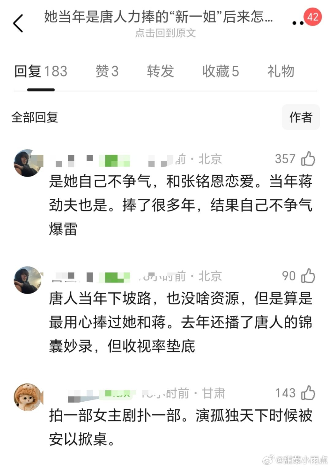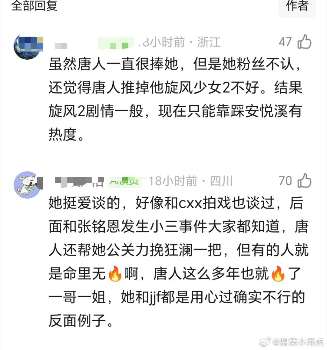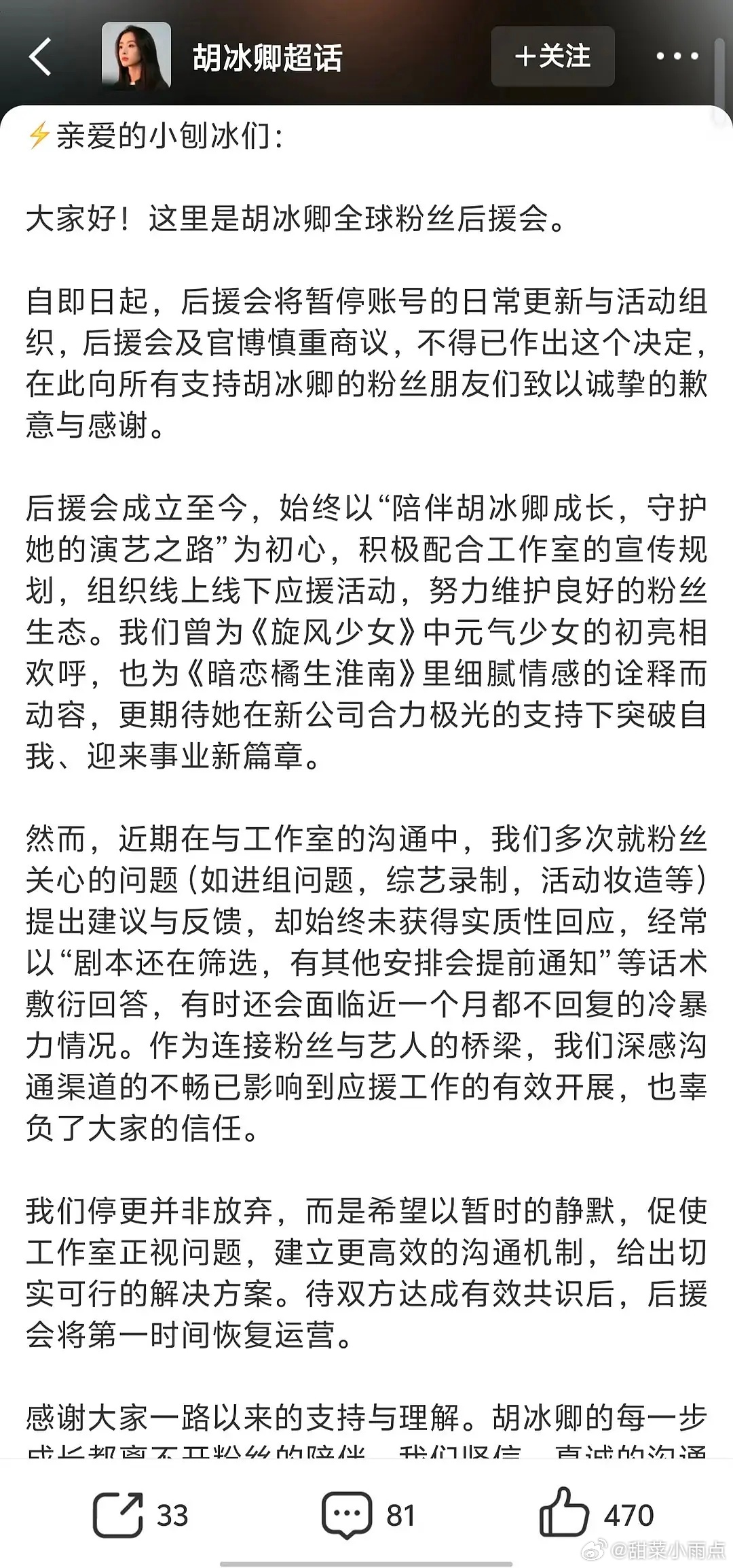 胡冰卿后援会宣布暂停账号她当年是唐人力捧的“新一姐”,《旋风少女》很爆,后来也拍了15部女主剧,最有印象的《独孤天下》还被安以轩掀凳子,她也越来越查无此人了…大家觉得是什么原因?🤔