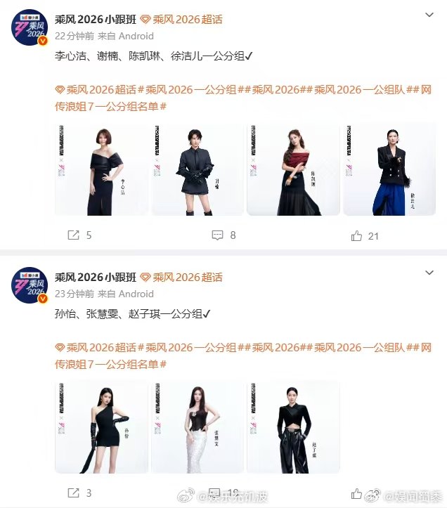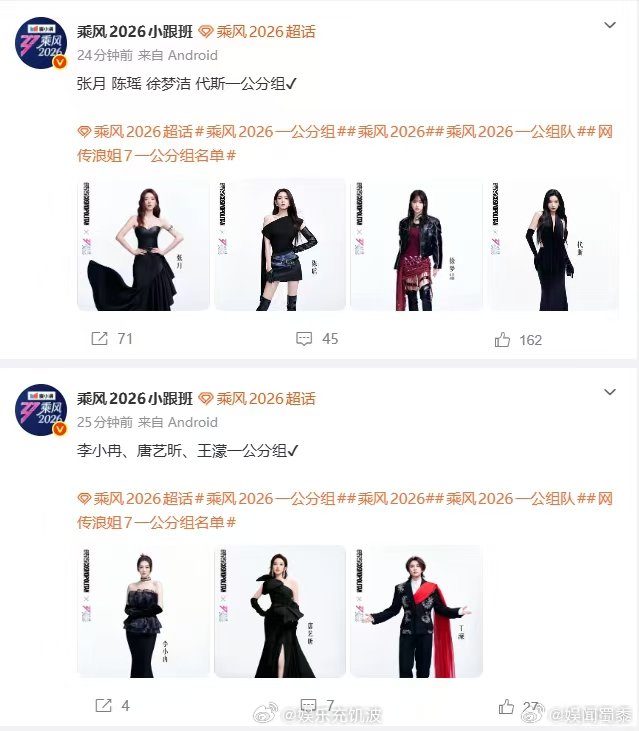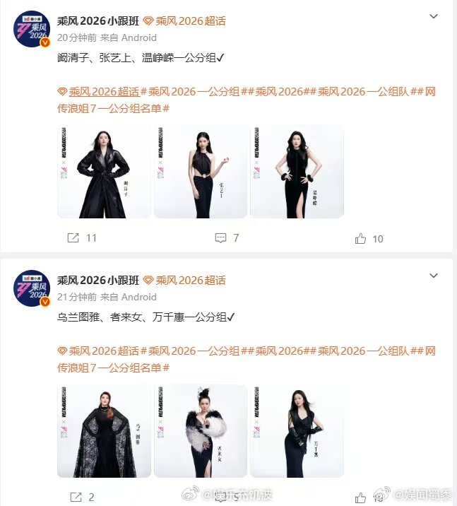 浪姐一公队长乘风 2026 一公组队模式:7 个三人团、3 个四人团,姐姐们终于