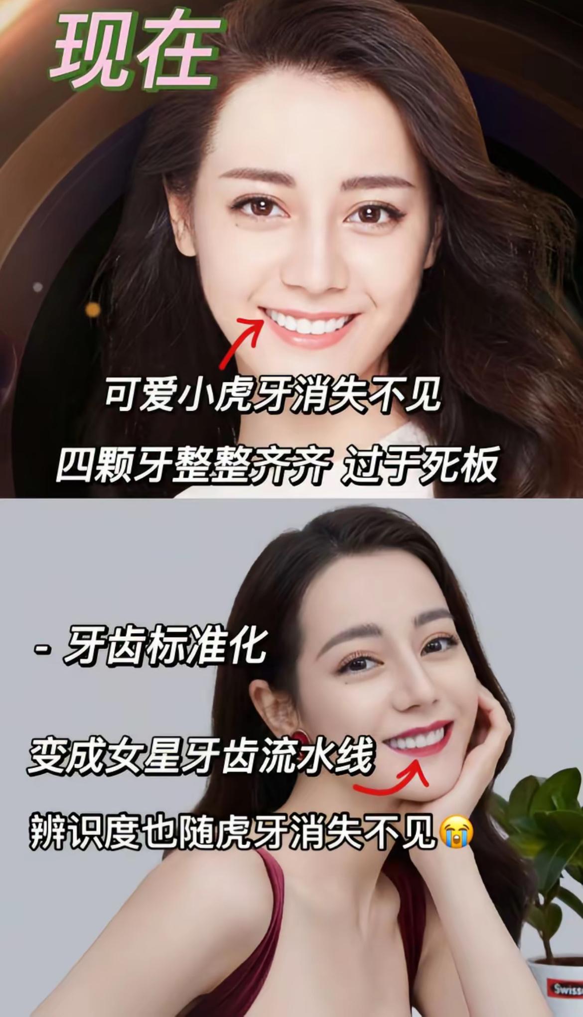 我好像知道热巴比以前显老的原因了,她的虎牙没有了! 现在的热巴换了烤瓷牙,很精致,但年龄感也上来了。高雯时期,小米粒一样的牙很适配她的小脸,现在的烤瓷牙太大了,很破坏和谐感啊。 不过她这次古装剧被人质疑不好看,倒和牙齿关系不大。我感觉是因为她的五官太立体了,双眼皮太宽,眼睛太大鼻子太挺,所以可塑性就不强,说白了就是妆容对她的作用不大,并不能贴合人物。 电视剧嘛,观众去看的时候,肯定想了解故事,了解人物,剧情。但是她的妆造和人设完全不符合,就很出戏了。 好多演员剧抛脸一个是因为演技,另外我觉得就是妆造啊形体啊细节啊,让这个人一出场,你就能看出来她是什么身份什么性格。热巴演戏甭管什么戏一看到她先想到的就是她是迪丽热巴[捂脸]所以出戏。可能太有辨识度了