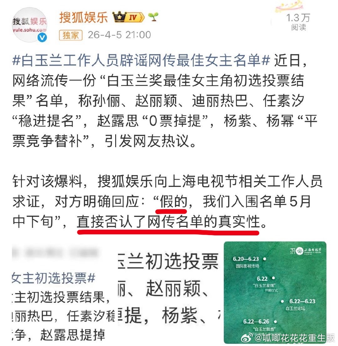 虽然知道很假,关键工作人员还偏偏要出来辟谣打脸。 白玉兰方否认网传名单