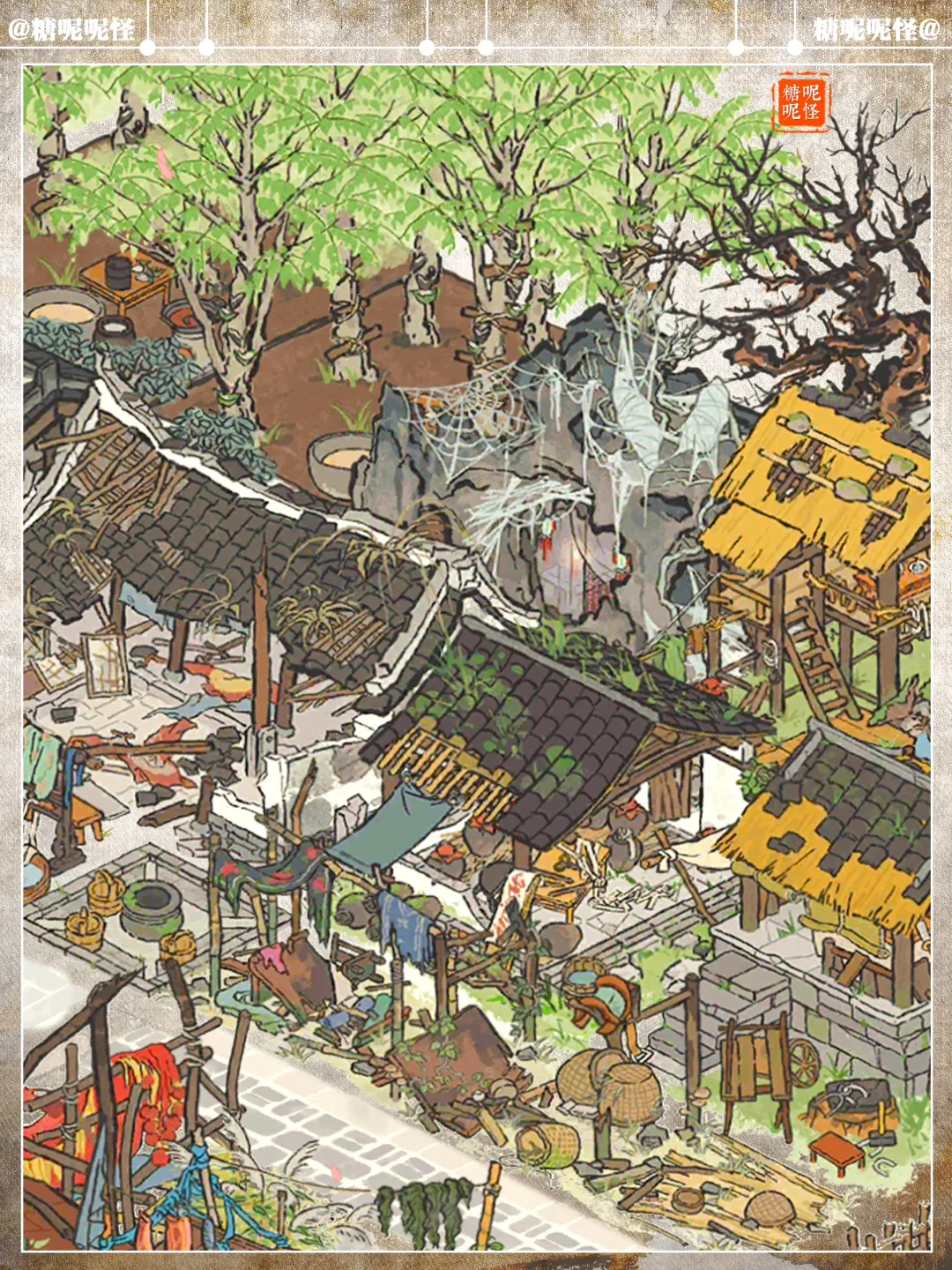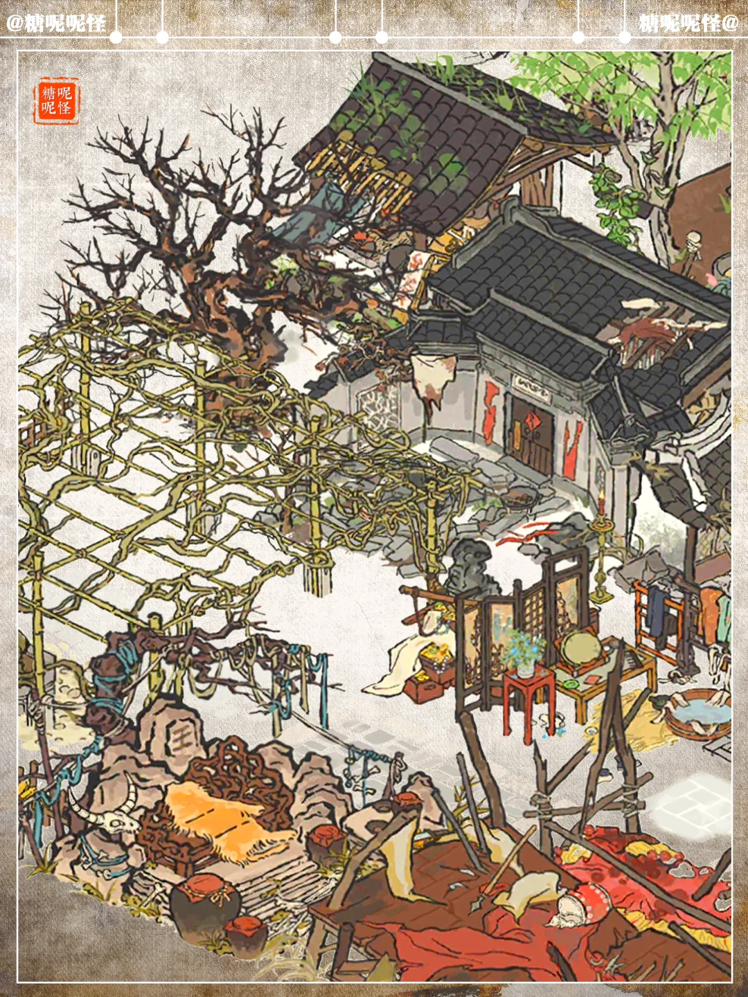 十七年前,此屋乃是一户张姓人家所居。 张氏有兄弟二人,一名齐,一名平,年岁相差无多,自幼感情甚笃。后二人应召参军,同属一营,兵戈三载,只得平一人归矣。 平归后半载,曾夜听井边青桐树上有人高唱军歌,近闻之,竟疑是其兄归来,然遍寻不见人。此后平每每夜起寻人,非力气耗尽不肯歇。如此日久,家人恐于其不利,举刀伐树,歌声遂止。怎料平更加一病不起,于三月后郁郁而终,张氏亦举家搬迁。 邻人闻此事慨叹不已,将此屋封锁不敢近,乃至今日,已残破不堪矣。