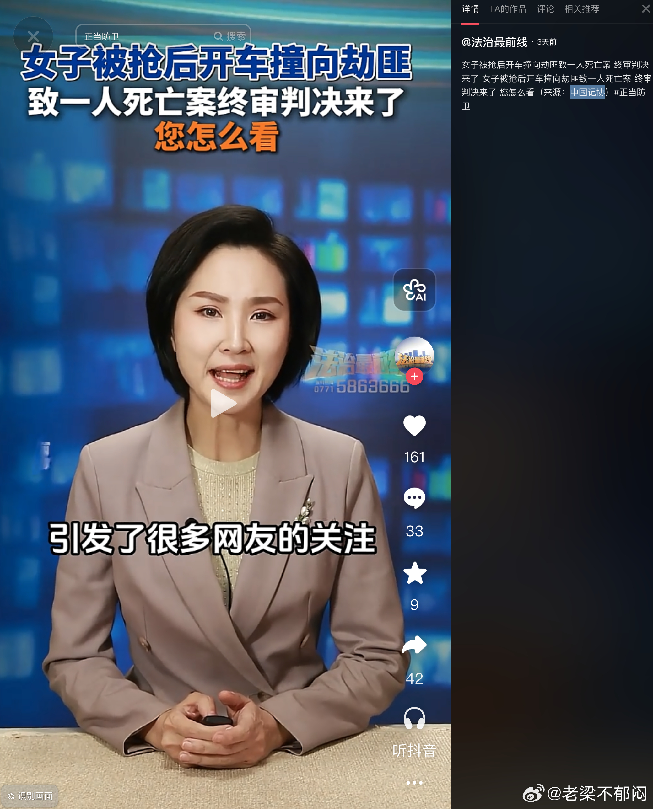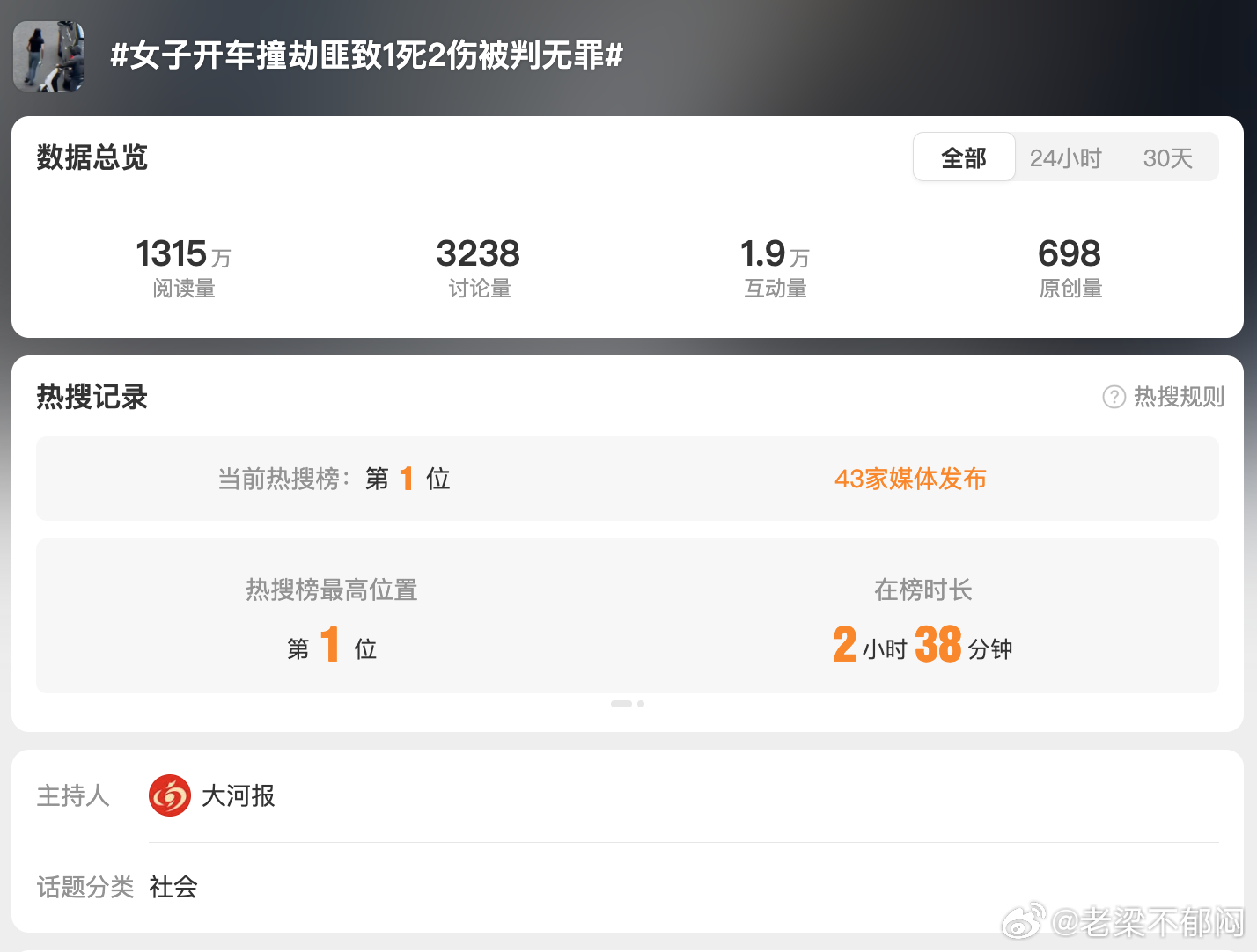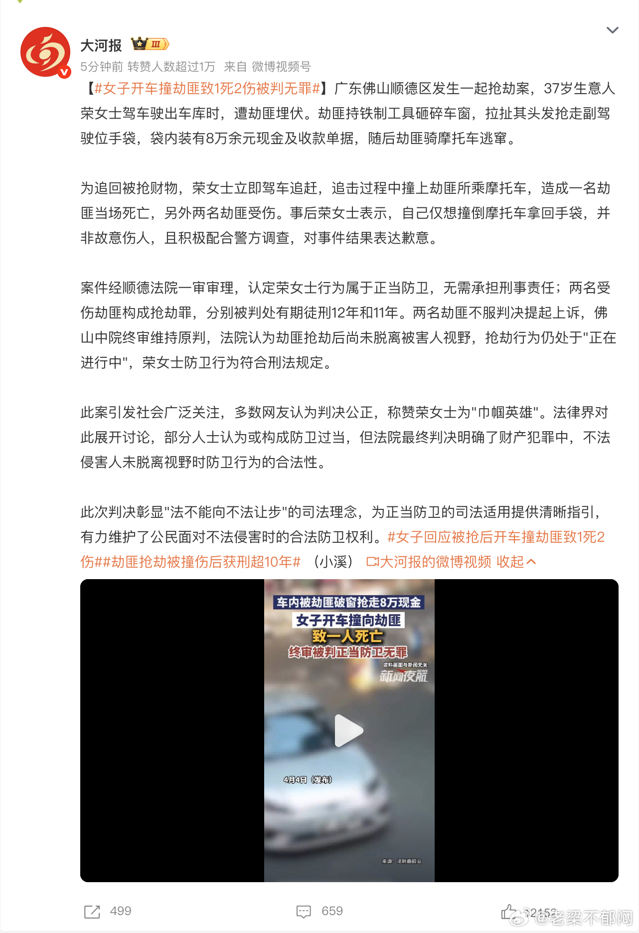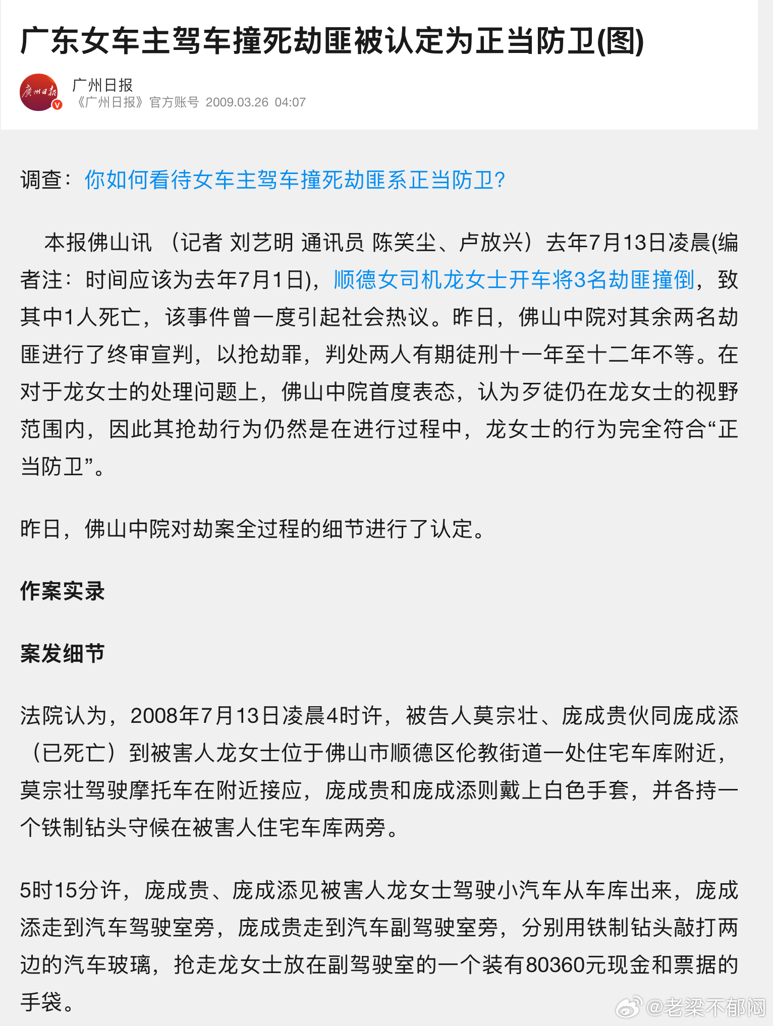 女子开车撞劫匪致1死2伤被判无罪正式向反馈一下,这个热搜是典型的翻炒旧闻的不实报道,此案实际发生在2008年7月,二审判决已经在2009年结束,当时有广州日报的报道网页链接 。距今已经有十多年,并不是新近发生的新闻。而且此案不存在女子被判无罪的问题,当时的审判主要是针对两名劫匪,被抢女子一审二审都没有被起诉,自然也不存在判决无罪的问题,所谓“被判无罪”是把当时法官普法的部分拿出来当成判决,明显与事实不符。根据我查询的信息,大河报的视频里显示是来自“法制最前沿”,但实际上这个信源可能是广西电视台的“法治最前线”,该媒体的信息来源写的是“中国记协“,而众所周知记协虽然是新闻工作者组织,但是并不是新闻单位,也不负责发布社会新闻报道。大河报未做核实翻炒旧闻并且歪曲部分事实,目前已经冲上热搜第一位!请问平台是管还是不管?是否纵容这种翻炒旧闻的行为?