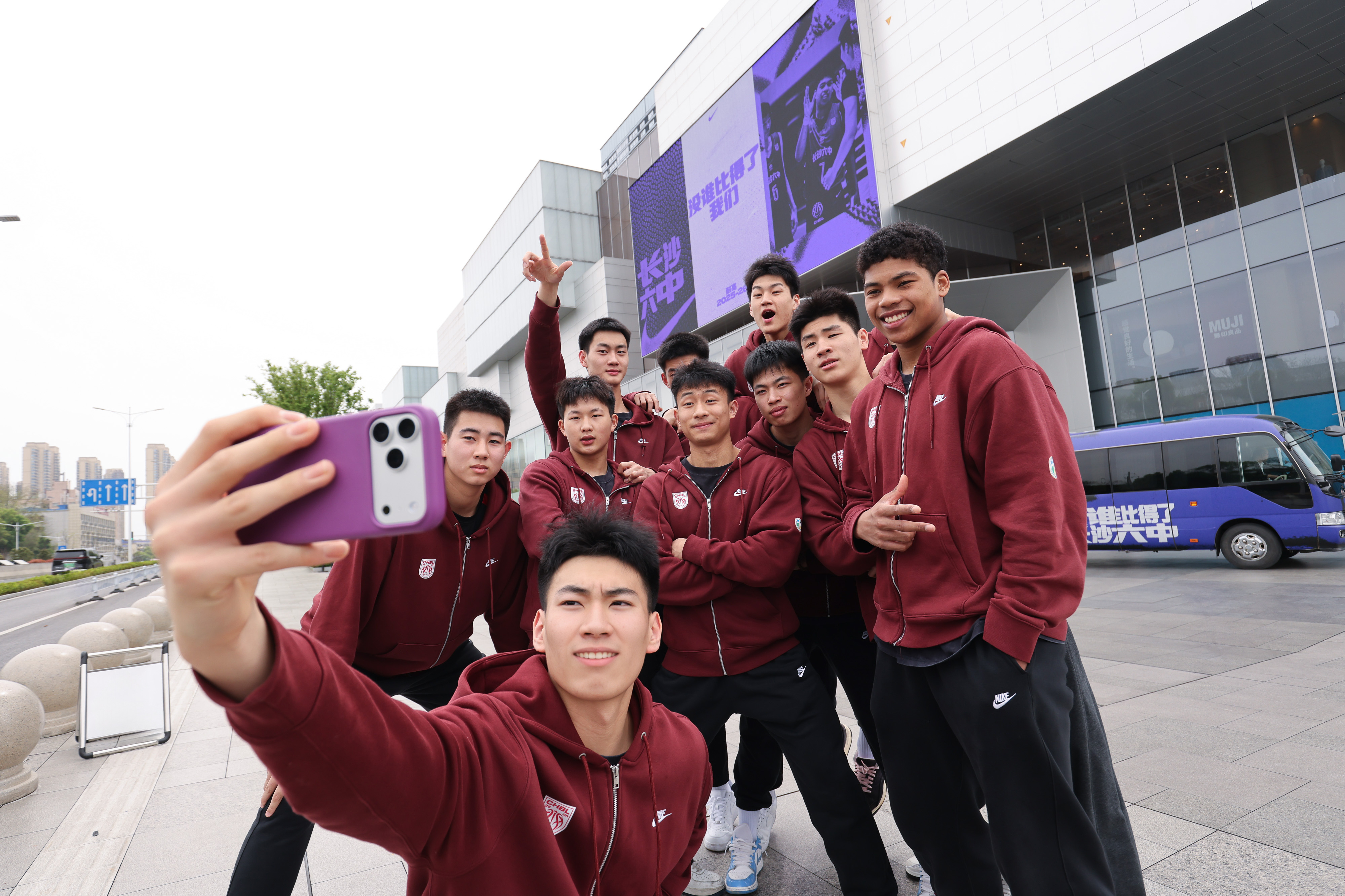 耐克今天给长沙六中和雅礼中学组织了一个耐高助威巴士活动,为即将到来的耐高决赛预热。