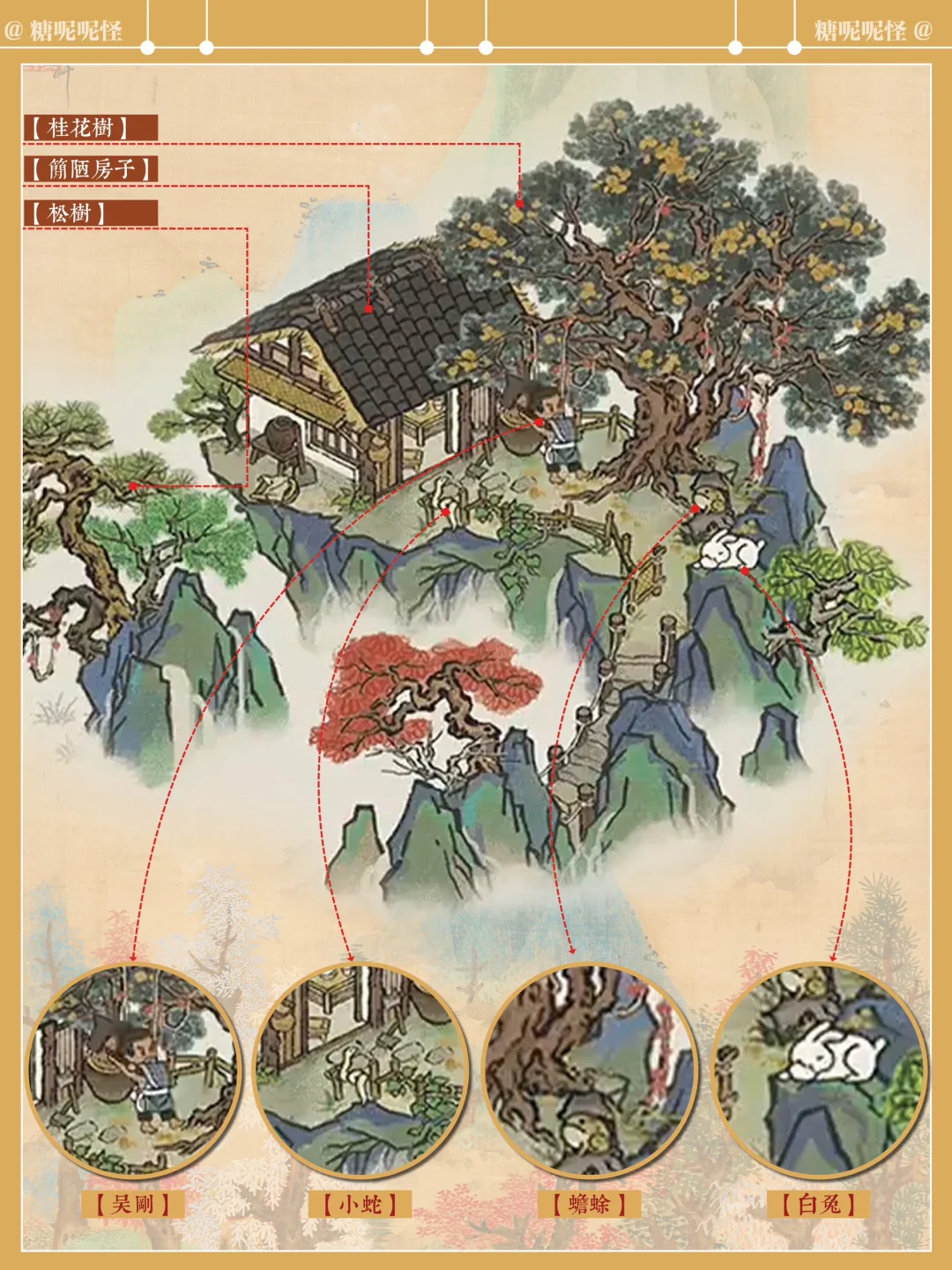 第一次看到【吴刚伐桂】就有点奇怪为什么要画上小蛇、蟾蜍