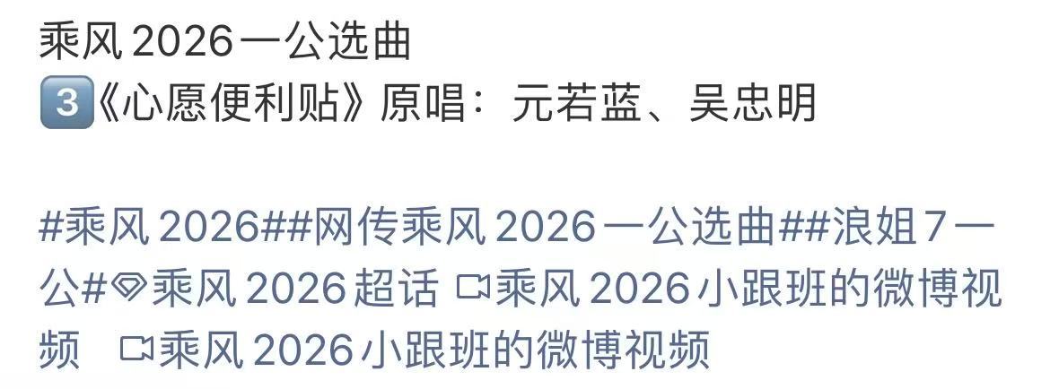 乘风2026一公选曲歌单浪姐7一公选曲歌单哇!浪姐7一公选曲歌单~每一首我都期待啊!!!