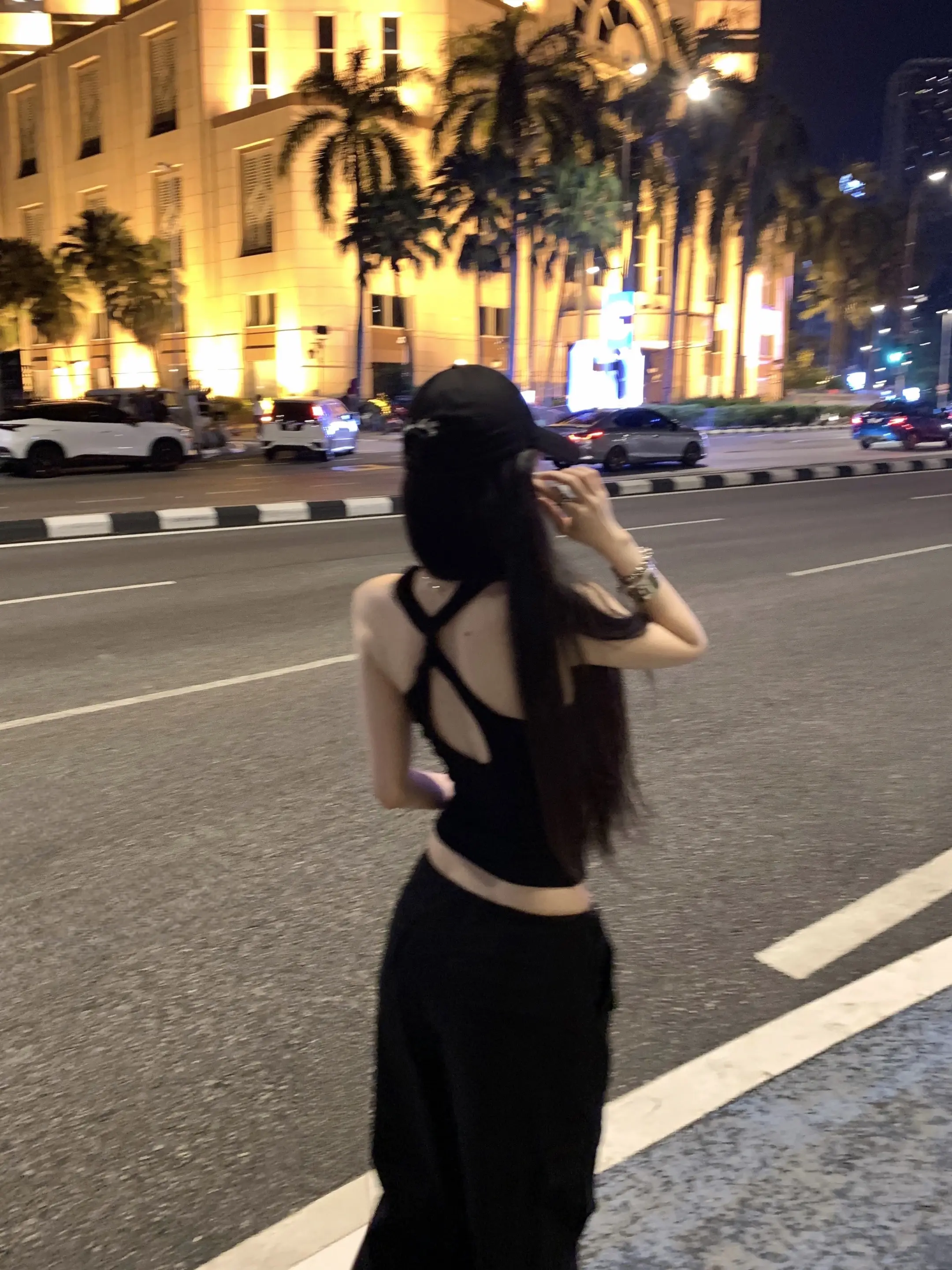 一袭长裙的御姐型美女,那气场简直绝了。就说穿搭,黑色丝绒包臀紧身长裙配黑色缎面吊