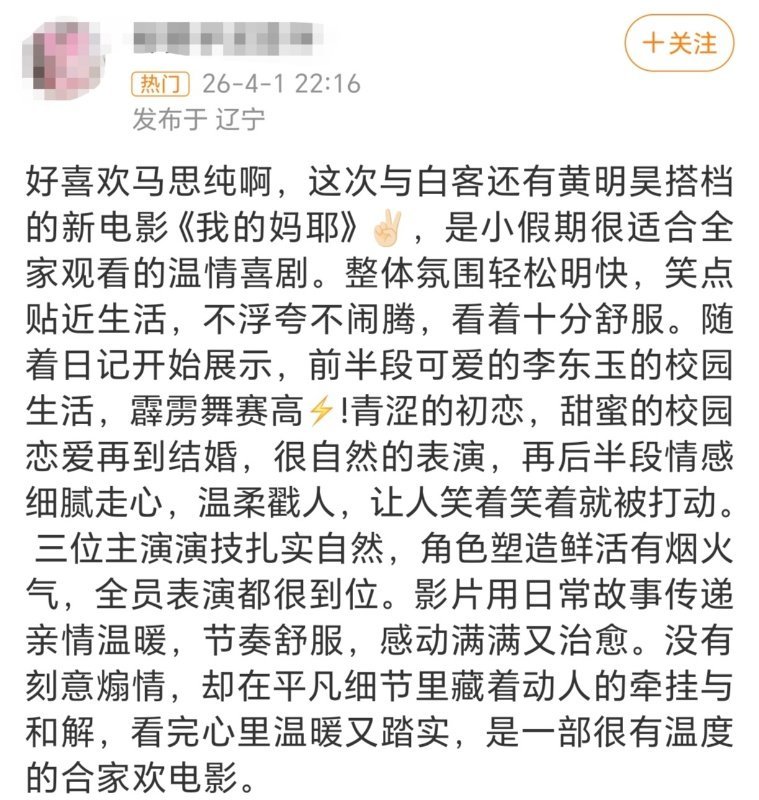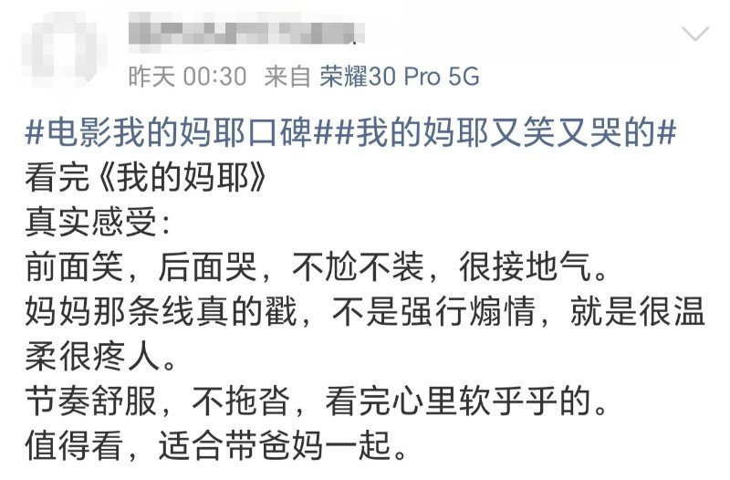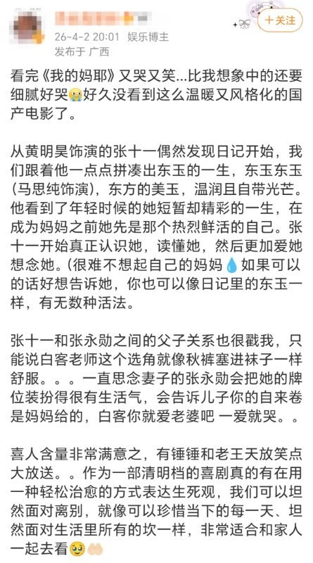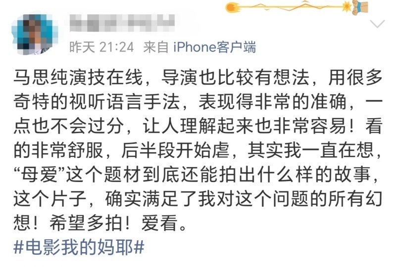 马思纯拍生孩子戏哭了8小时 《我的妈耶》把妈妈从神坛请回人间。没有苦情和牺牲绑架,只有闺蜜、大笑和偶尔的任性。看完想跟妈妈做朋友,聊聊她那些我没参与过的故事。太喜欢这种不煽情的温柔了。