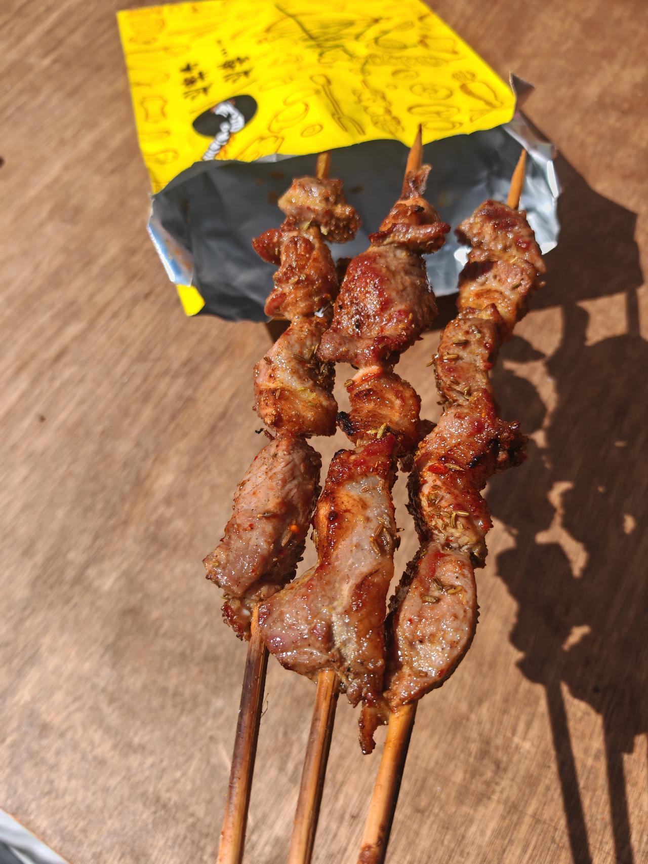 最近,刘家桥华北路市场,新开了一家烧烤店。 你说怪不怪?每当这里开个新店,不管卖什么东西,总会人山人海,门庭若市。 看到如此热闹的场面,我也凑到前面看个究竟。 这个店的规模不大,只一间屋。烧烤炉放在店的门口,是个环保型无烟炭火炉。 可能是占了地角好的原因,离公交车站只有十几米的距离,来这里的食客总是络绎不绝。 另外,这里的牛羊肉,猪肉大串,亲民的价格,足够的份量,也是吸引食客的重要原因。 他们的定价是这样,牛羊肉5元一串,猪肉10元4串不单卖。 带着好奇心,我分别三次试吃了这里的肉串,总的感觉还是不错。最大的印象,就是吃了四串后,有一种饱腹感。 所以说,烧烤这东西,不可以吃的太多,也不能常吃。尤其是上了岁数的老年人,吃多了不易消化。 不管怎样?一种新生事物的出现,只有经过亲身体验,才能体会到其中结果,这也算是一种阅历吧!