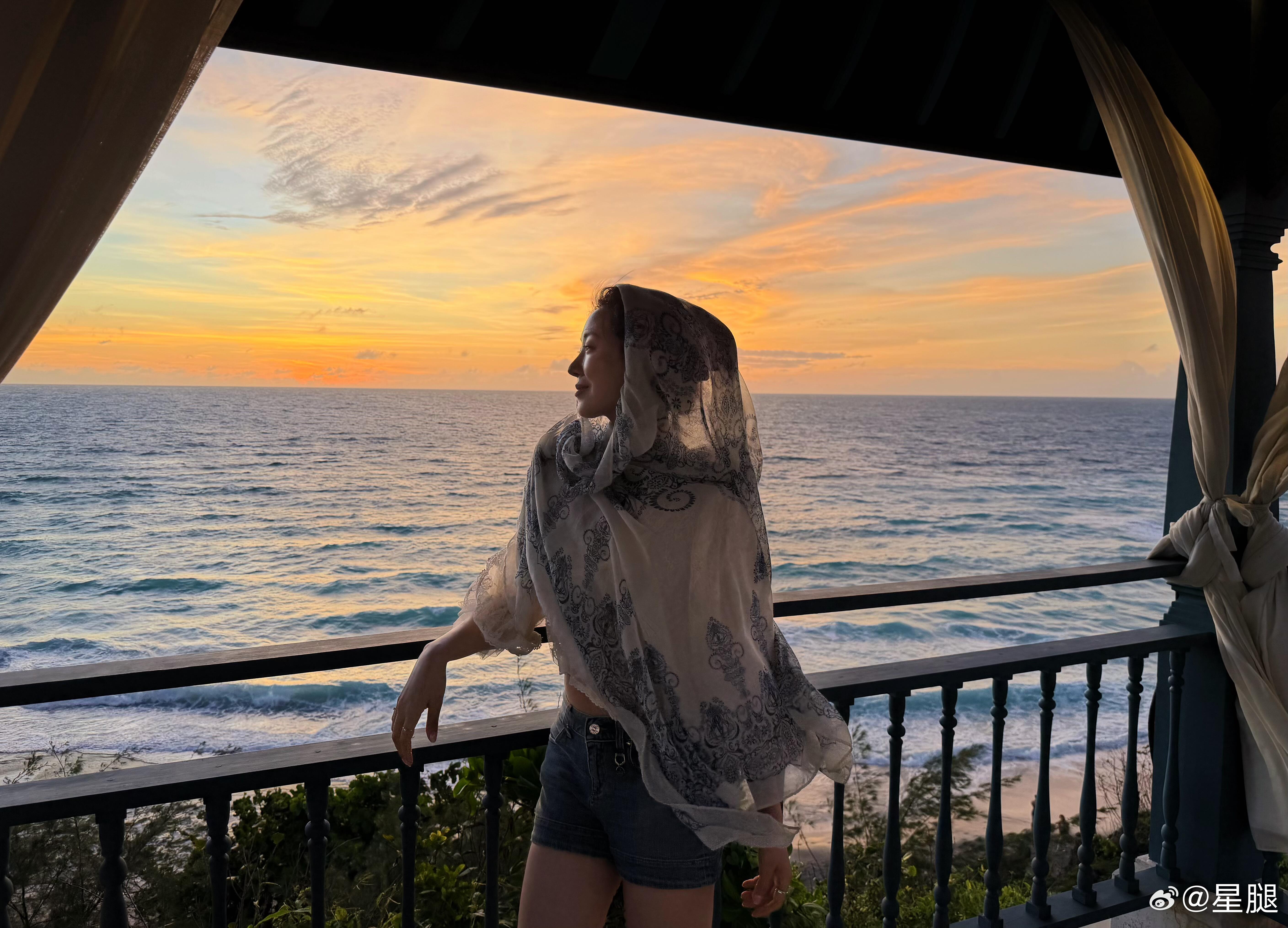 傅冬暖 🏖 澳大利亚邦迪海滩度假,蓝裙配丝袜