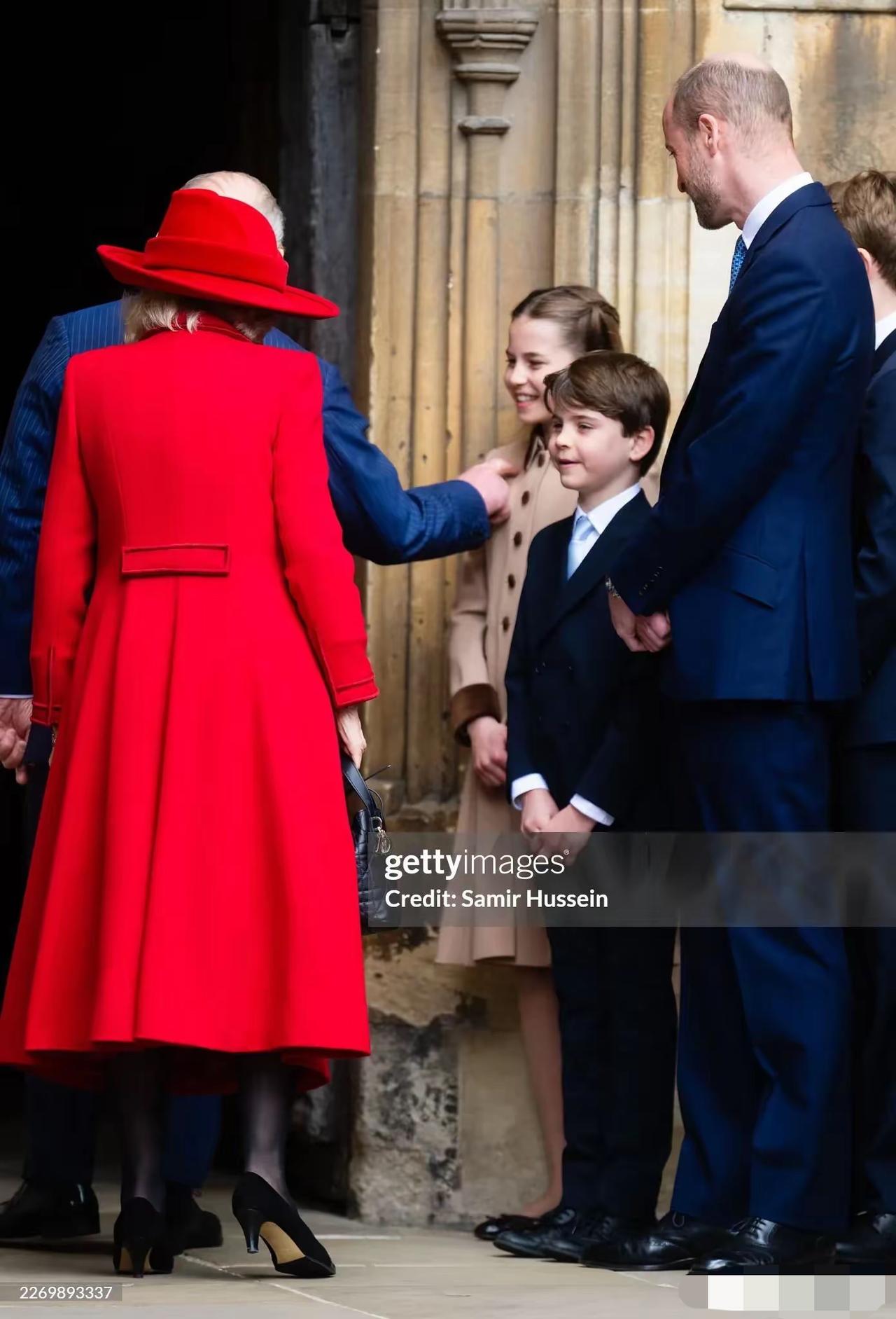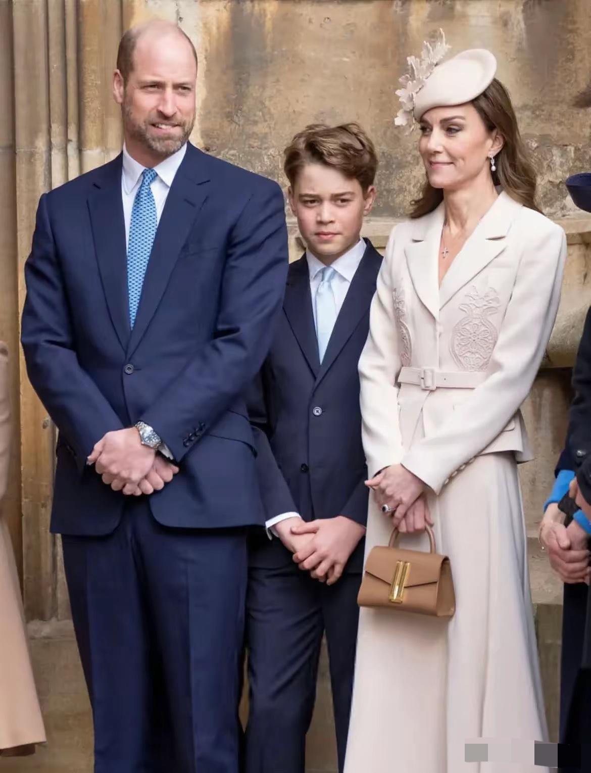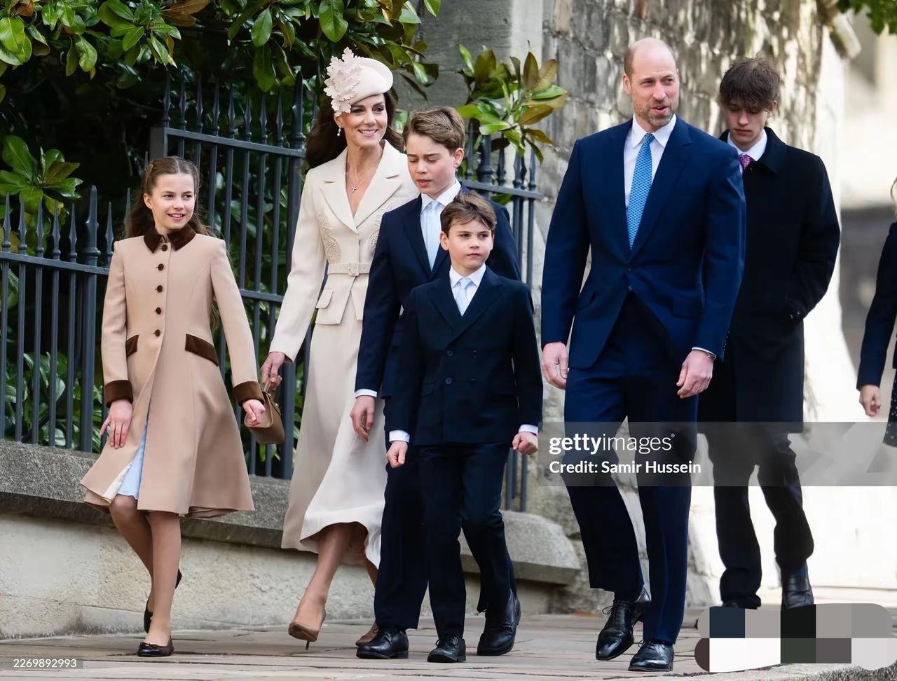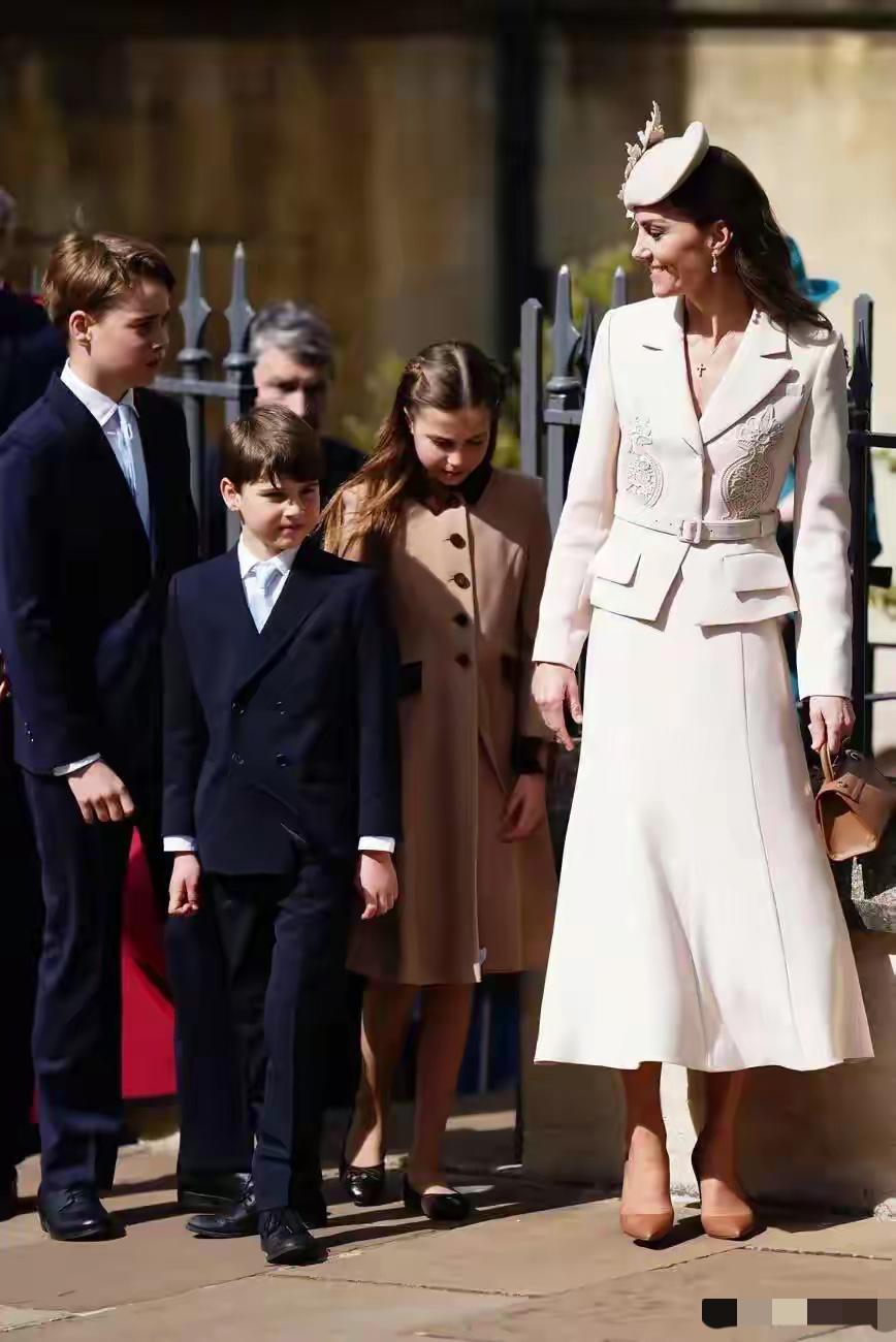 复活节礼拜,英国王室传统集会[灵光一闪] 风有点调皮,吹起了小夏公主的裙摆, 小路易越大越懂事,被老查表扬了, 乔治的身高已超170厘米,感叹这基因。 凯特4年前的燕麦色套裙重现,礼帽新款[呲牙]