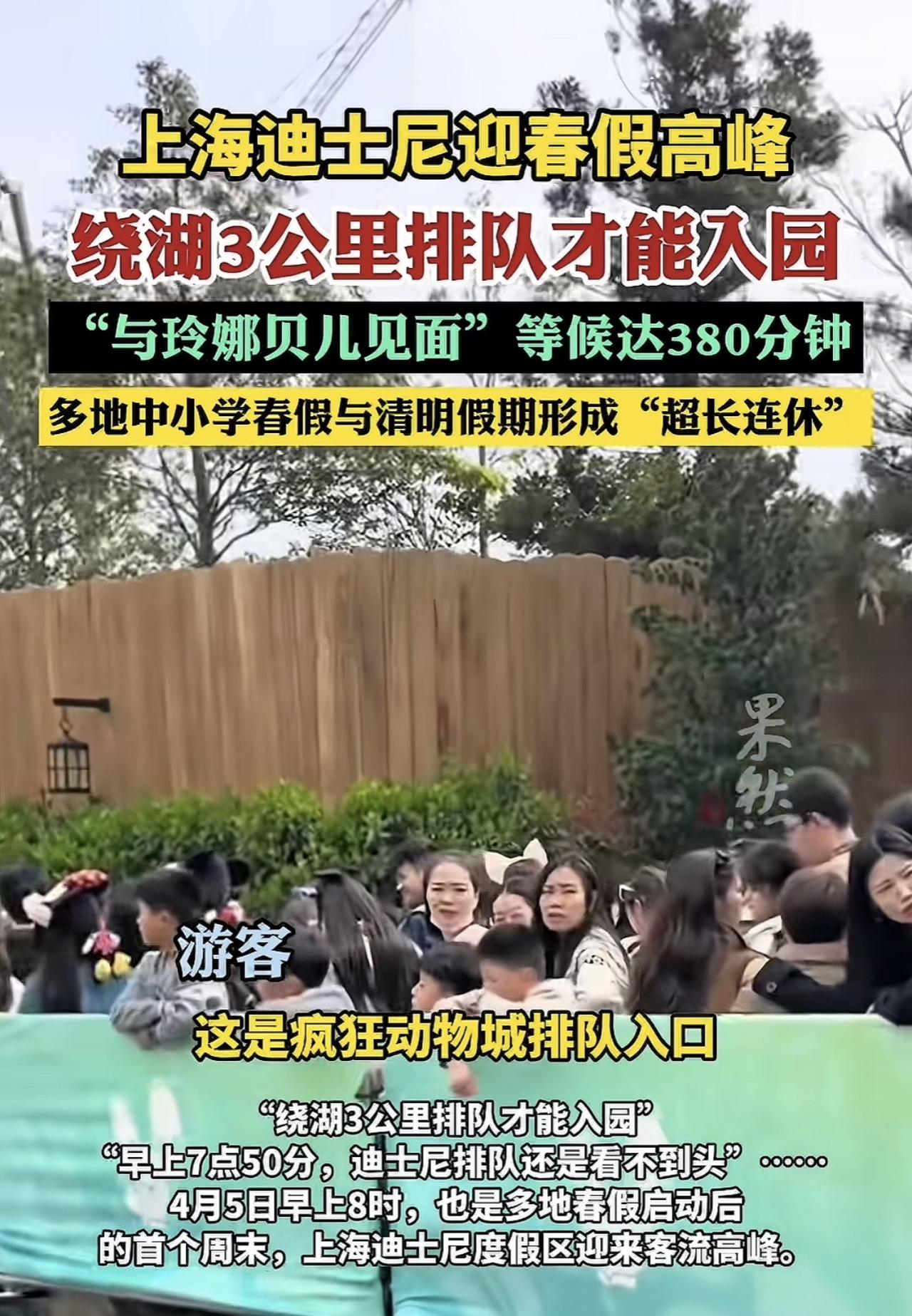 所以说国内的游乐园再怎么比都比不过外国的迪士尼,只要一到放假,那迪士尼就排满了人,而且这些年迪士尼的门票价格涨了好几次了,依旧获得大家的热情。 可以看到这一次清明有个小短假,结果迪士尼直接爆满,排队3公里才能进去。光等一个项目就要等380分钟,还那么多人的话,其实进去感觉也没什么玩的,因为很多项目都要排队。基本上就是进去逛一逛,拍拍照。这关键是里面的东西也很贵,去一次真的开销挺大。不过哪怕是这样,也抵挡不住大家的热情。