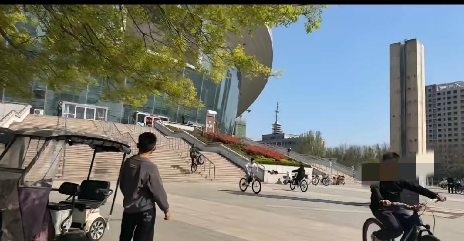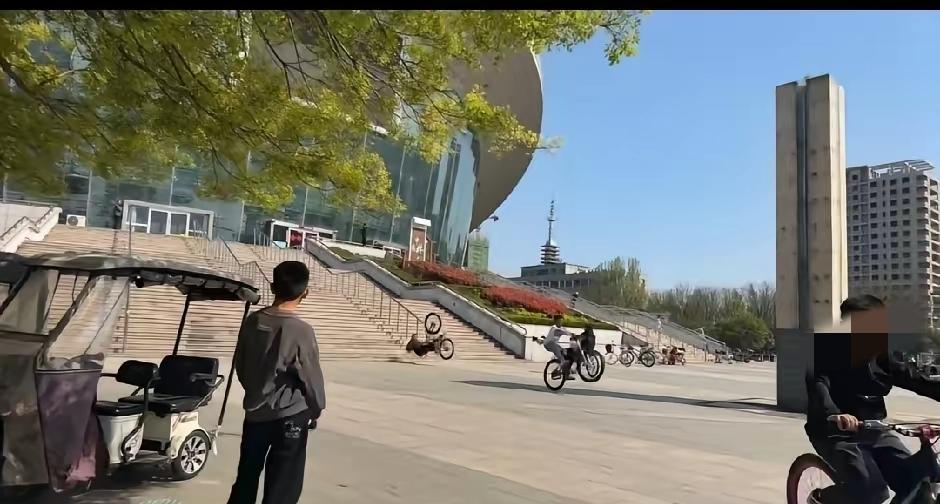 菏泽少年骑行摔到后脑勺当场昏迷,生死难料,父母会不会“赖上”大剧院呢? 2026年4月5日,山东菏泽大剧院,几位少年在骑车玩耍,他们没有骑行正常路,反而是从高处台阶上冲下来,有个小孩耍帅不成,直接重重摔倒在水泥地面上,后脑勺着地,生死难料。 从网上发出的视频可以看到,几个小孩子都10多岁了,他们骑着自行车鱼贯的从菏泽大剧院的台阶上冲下来。 前面几个孩子都是顺利的下来了,最后的一个小孩子在冲下台阶的时候,不知道是失控了,还是为了显示自己的车技,把车把给抬了起来。 就这样头轻脚重的,小孩子被甩到了下面,然后后脑勺重重的摔在了水泥地面上。 小孩子当时的双手还在高举着,眼睛紧闭,当场就昏迷不醒了,身体一阵阵的抽搐。 周围很多人赶紧围过来,有人询问孩子父母在没在现场,有人赶紧拨打了120急救电话。 说实话,后脑勺着地摔倒的危害太大了,往小了说是轻微脑震荡,严重一点的就可能脑出血,分分钟就能要命的。 其实交通法明确规定了,只要是骑车,不论是自行车还是电动车,都需要戴头盔,为的就是保护头部安全。 如果这个孩子戴了头盔,摔上这样一下,有头盔保护应该没有大问题。 从现场的图片,还有孩子受到的撞击力度来看,脑损伤的程度不低,小孩子恢复正常的可能非常小了。 目前还没有消息说明这个孩子的身体情况,应该是非常严重的。 孩子父母知道这件事会有什么反应呢?那就是天塌了! 好好的一个少年,说出事就出事了,怎么能不发疯呢? 这几个骑行的少年会不会有责任呢? 现在成年人在一起喝酒出事了,同桌的人都有责任,估计这几个小孩也会被问话。 再就是菏泽大剧院了,为什么修建那么高的台阶,而且也没有保安执勤呢?出了事不应该赔偿吗? 大家说最后家长觉得谁的责任最大呢?