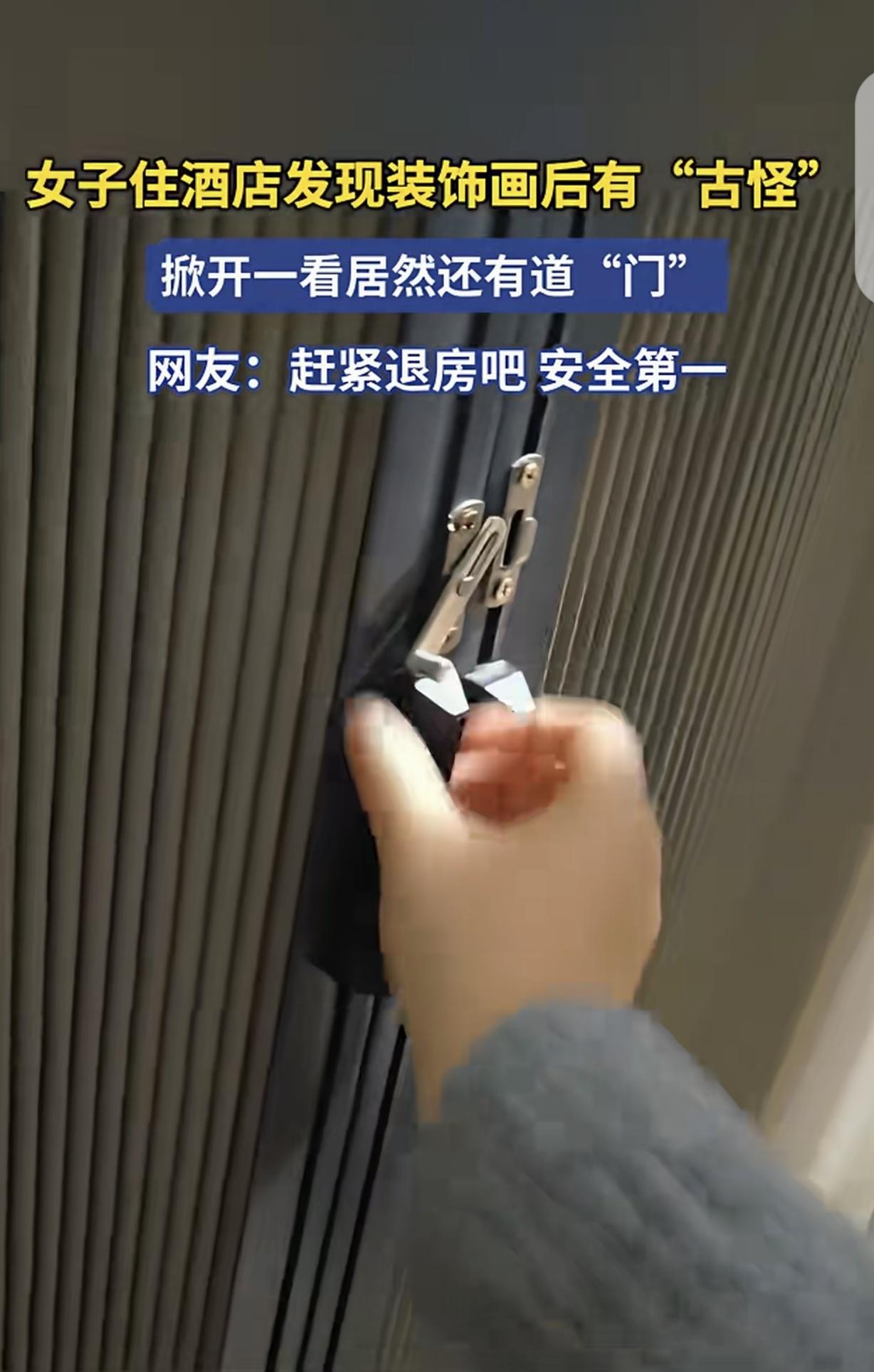 “细思极恐!”湖北,一女子入住酒店402房间,看见墙上有幅装饰画,看着怪怪的,她掀开装饰画,惊讶的发现后面是一扇“暗门”,说是“门”,其实就是一个带插销的帘子,她打开一看,顿时直冒冷汗,连夜换了房间,要不是附近只有这一家酒店,她酒店都换了。 一女子上周走亲戚,遇上了这辈子都忘不了的糟心事儿,甚至都有了心理阴影。 亲戚家住的位置很偏僻,前不着村后不着店,住在亲戚家可能不方便,她就决定入住酒店。 可方圆几公里只有一家连锁酒店,她赶过去时天已经黑透,只能硬着头皮办了入住,房间在四楼的402。 进了房间,女子还是有防范意识的,她先检查了一遍门锁,确认没问题才放下行李箱。 她刚要收拾东西,眼角余光瞥见墙上挂着幅抽象装饰画,总觉得哪里不对劲,画框和墙面之间的缝隙比正常装饰画宽不少。 她心里犯嘀咕,伸手轻轻一掀,发现画后面不是墙壁,而是块安着插销的布帘。 女子的心跳一下快了起来,帘子后面是啥? 她犹豫几秒后拉开插销,决定一探究竟,万一帘子后面藏着啥危险,自己睡着了会发生什么?这太吓人了。 她掀开布帘的瞬间,后颈直接冒了一层冷汗。 帘子后面是个窄窄的楼梯,铁栏杆上还沾着些灰尘,往下看通到哪里也不知道,她是四楼,让她下去查看,她也没这个胆子。 那一瞬间,女子浑身的汗毛都竖起来了。谁都能从外面顺着楼梯爬上来,掀开布帘就能进她的房间,这跟没锁门有啥区别? 她赶紧退出来,把布帘和装饰画归位,抓起手机和行李箱就往前台跑。 前台的工作人员听她说完,先是愣了一下,然后轻描淡写地说那是酒店的“备用逃生通道”,平时很少用。 可女子不听对方的解释,她强烈要求换房间,说实在的,如果不是附近只有这一家酒店,她都准备换酒店了。 还好,酒店给了换了房间,新房间没这情况,但女子这一晚也住的心惊胆颤,一点都没睡好。 这事看完真让人后背发凉,酒店打着“逃生通道”的幌子,在房间里留个直通野外的无锁楼梯,简直是把住客的安全当儿戏。 别说女子了,换个大老爷们住,心里也发怵。 住酒店图的就是个踏实,结果倒好,外人能随便进房间,这跟把人往危险里推有啥区别? 酒店不能仗着自己是附近独一家就敷衍了事,安全是底线,这种明显有漏洞的设计,真出了事谁都担不起。 《治安管理处罚法》第39条规定,旅馆、饭店等单位,对住宿旅客的人身、财产安全未尽到合理安全保障义务,致使他人遭受人身损害、财产损失的,应当承担相应的赔偿责任。 酒店房间内的外部楼梯无锁,而且直通外面,明显没达到合理安全保障标准,如果因此发生住客安全事件,酒店需承担赔偿责任。 同时,这种设计也违反了消防逃生通道的规范要求,消防部门可依法对其进行处罚。 对此,你怎么看?