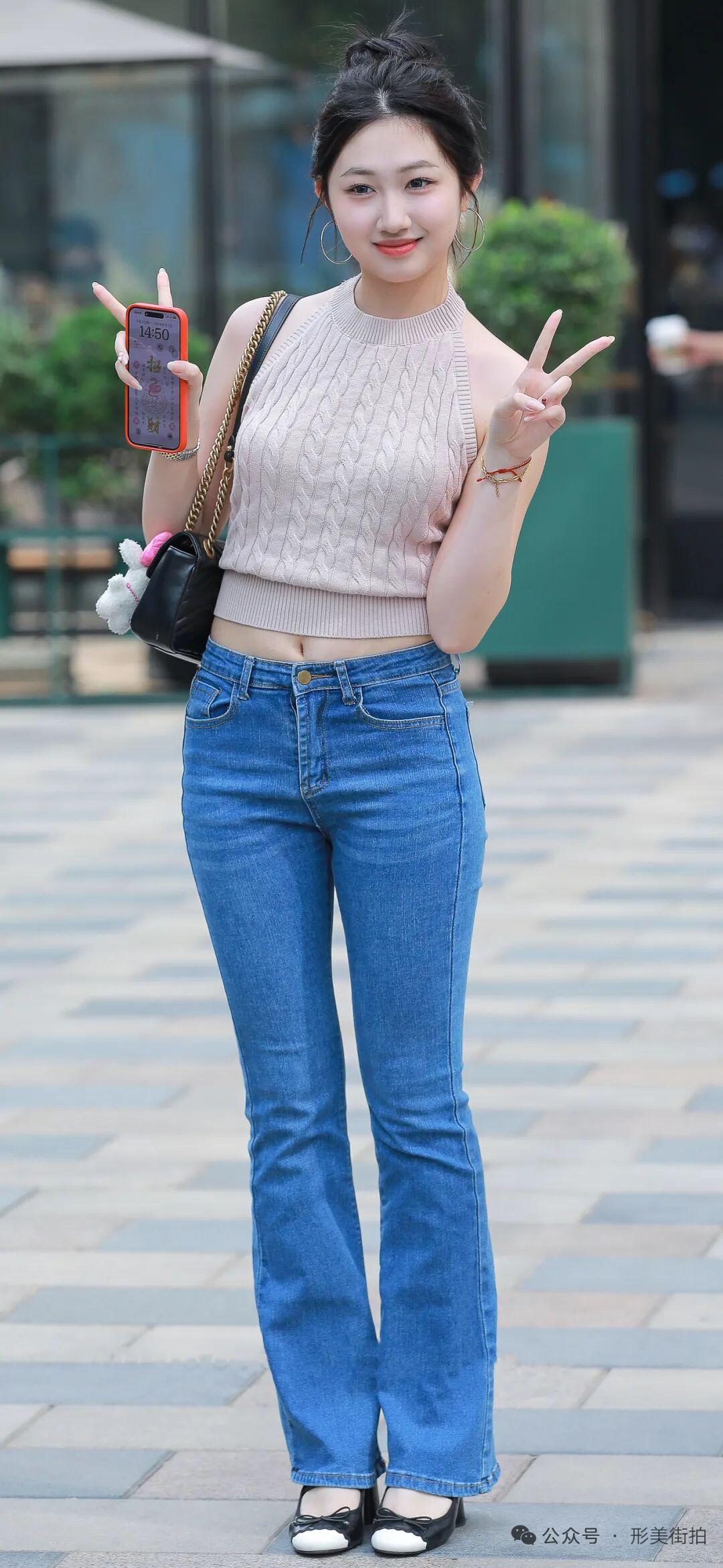 元气少女穿搭指南:米色无袖上衣+牛仔裤,活力满满!🌞👗👖👟