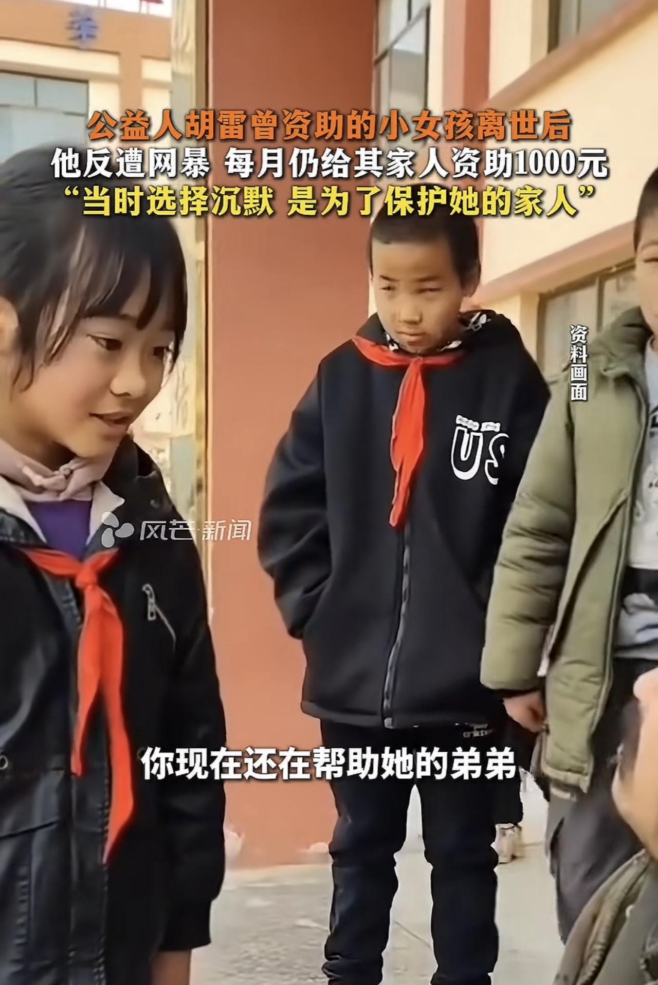 我觉得胡雷做的对的,虽然当时很多人网暴女孩的家人,谴责女孩的家人将其逼死。但是女孩的弟弟,女孩的其他的家人是无辜的。所以胡雷才在当时选择了沉默,不想让这件事继续曝光,给女孩的家人造成压力,他也表示总不能真的把姐姐也给逼死吧。 但胡雷的内心是善良的,哪怕是直到现在,他还每个月给女孩加了1000块钱的资助。要是换做是别人他是真的不会继续捐钱吧?所以说大多数人实际上都做不到胡雷这样的。