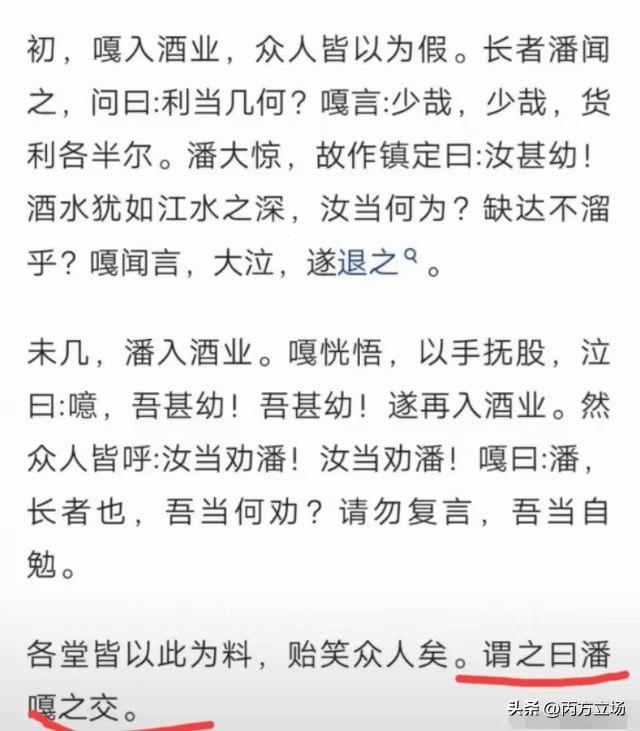 最近看了两篇文言文版的“潘嘎之交”,发现解释虽然不同,但各有各的道理。 简单说就是:潘长江劝嘎子别卖假酒,结果自己转头就卖上了。网友戏称“前辈劝后辈,自己却成了后辈”。 一个版本说这是“劝人向善,自己从恶”,另一个说是“此一时彼一时,身不由己”。你觉得哪个更贴切?反正我是觉得——都挺真实。 (图片来源于网络) 潘嘎之交