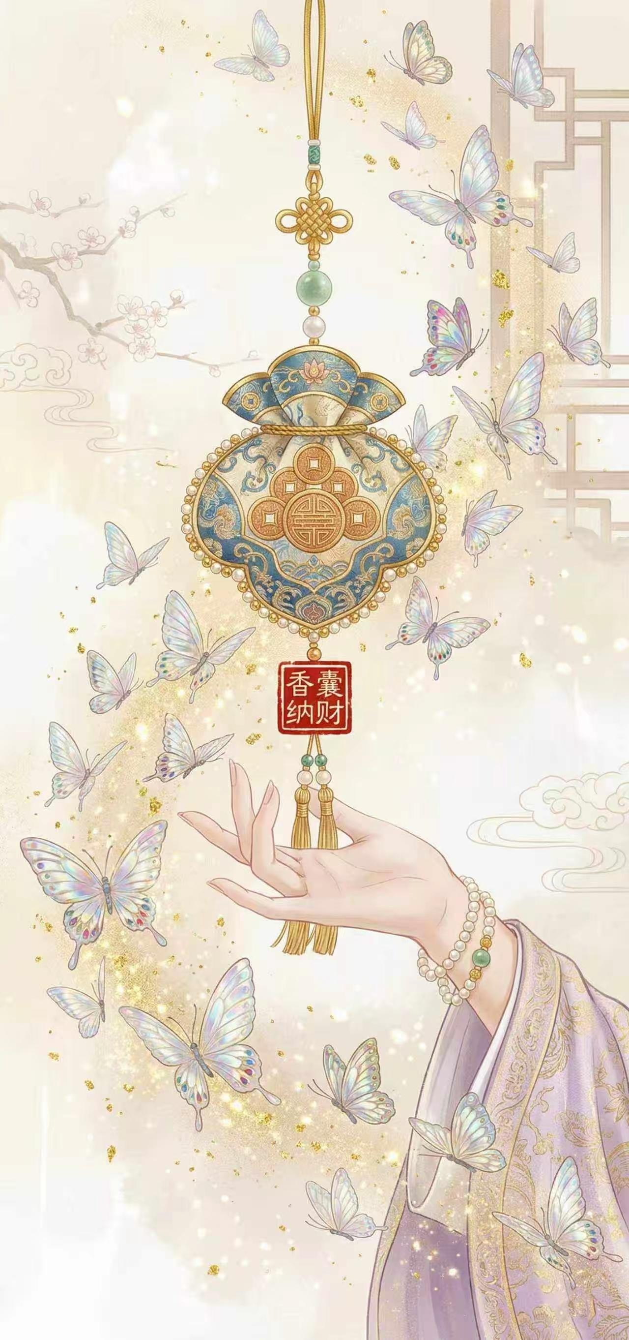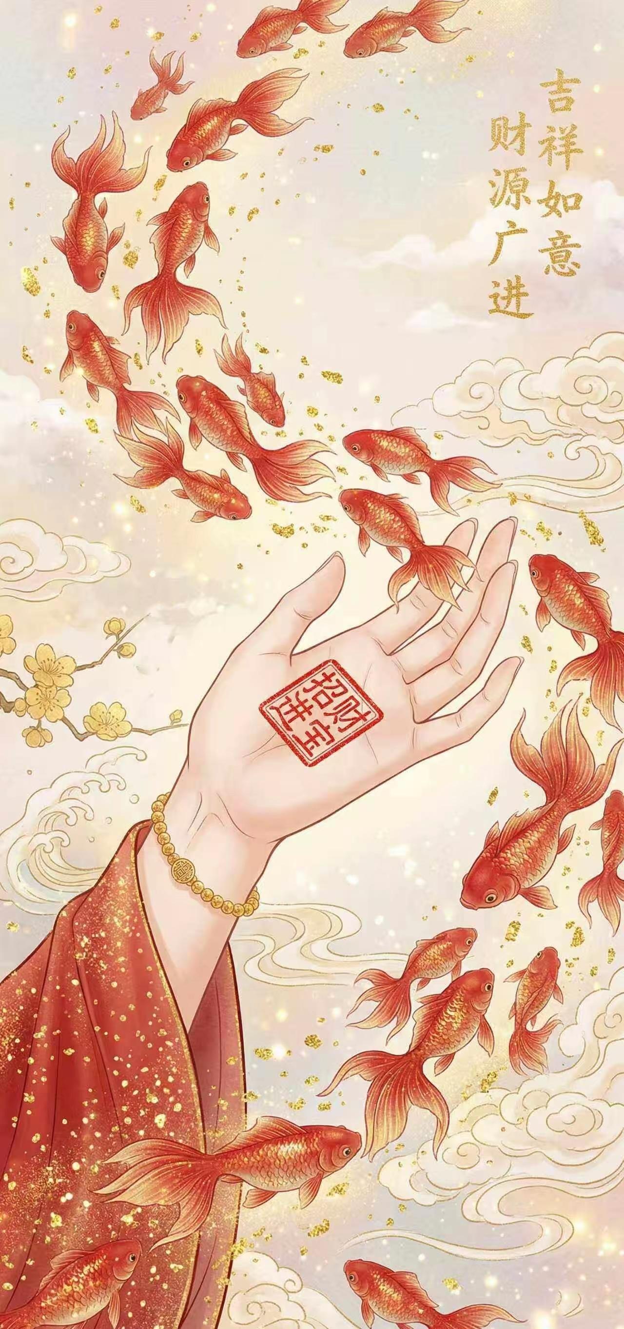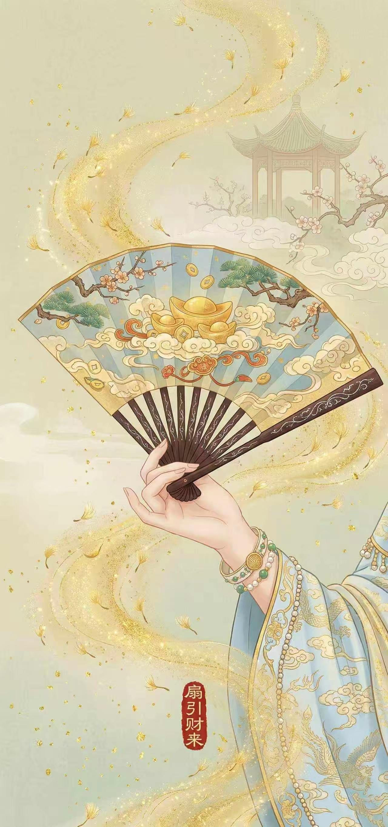 掌间锦鲤跃,财源滚滚来; 轻摇招财扇,福运徐徐开; 香囊纳祥瑞,万事皆顺意。 以国风之韵,载满岁之喜,愿新岁吉祥如意,财福双至。