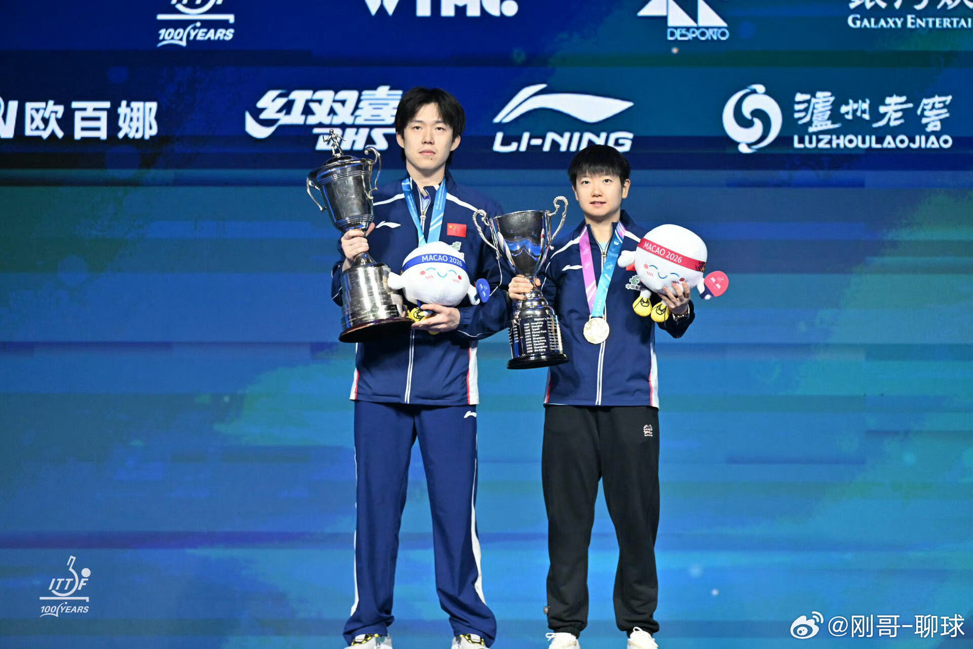 恭喜孙颖莎王楚钦再次为国争光,双双夺得澳门世界杯女单男单冠军!让五星红旗伴随着国歌高高飘扬在澳门赛场![赞][赞][赞]