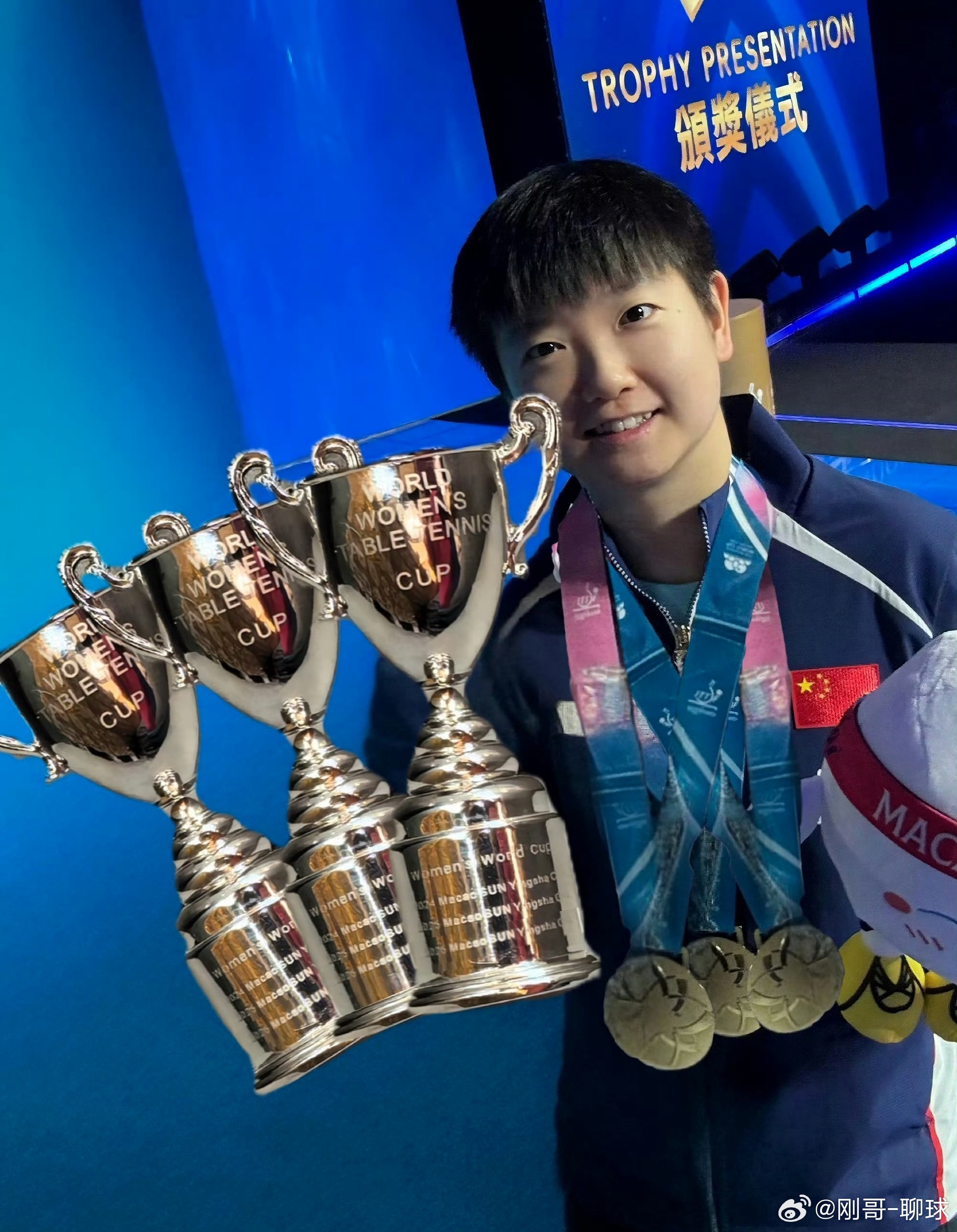 登顶同框!王楚钦灵魂拷问"奖杯帽呢",孙颖莎一句"咱俩不一样"笑翻全场王楚钦问孙颖莎你的奖杯帽呢2026澳门世界杯收官,国乒包揽男女单冠军!颁奖台上演超甜一幕:王楚钦首夺世界杯男单冠军,孙颖莎女单三连冠,两人并肩合影时,莎头组合突发可爱互动,瞬间引爆全网。🏆 名场面:奖杯帽灵魂拷问王楚钦捧着带盖的埃文斯杯,瞥到孙颖莎的哈马隆德杯没有顶盖,当场脱口而出:"帽呢?!没帽啊?"孙颖莎被逗笑,淡定回怼:"咱俩不一样!"原来男女单奖杯设计不同:男单有帽、女单无顶,历史传统差异。📱 自拍互让:谁拍谁头大接着为自拍抢着谦让:- 王楚钦:"你来你来!"- 孙颖莎:"你来!显得头大!"- 王楚钦:"奖杯太重了!"最后王楚钦无奈举机,还贴心侧身不挡孙颖莎,默契拉满 。💬 全网热议- "九年搭档才有的自然感,太甜了"- "王楚钦首次拿男单杯,好奇宝宝上线"- "孙颖莎:你拿你的有盖杯,我拿我的无顶杯" - "赛场是对手,台下是家人,这才是国乒氛围"巅峰相见,并肩捧杯,互动太可爱!