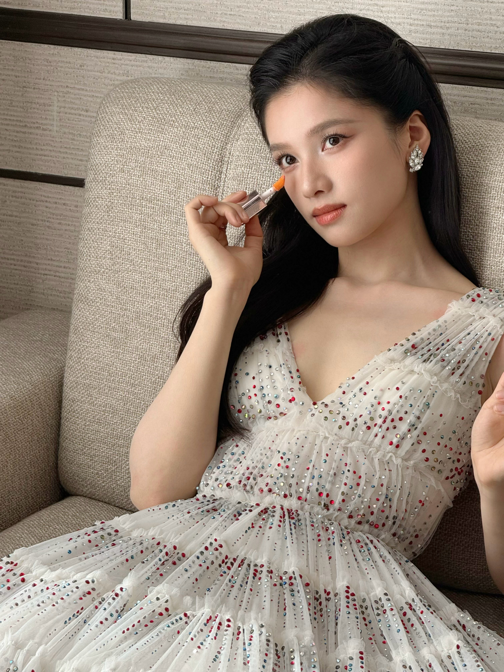 张婧仪,唯美白裙,精致浪漫。张婧仪