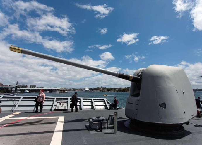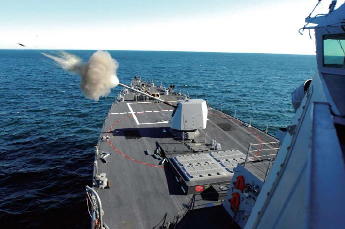 Mk 45型127毫米舰炮是美国联合防务公司 [现已被英国BAE系统公司(宇航系统公司)收 购]研制的现代化轻量舰炮系统,由127毫米L54 Mk 19火炮与Mk 45炮座组成。在服役期间,Mk 45型舰炮经历了多次技术改进,发展了Mod 0、Mod 1、Mod 2和Mod 4等多种型号。