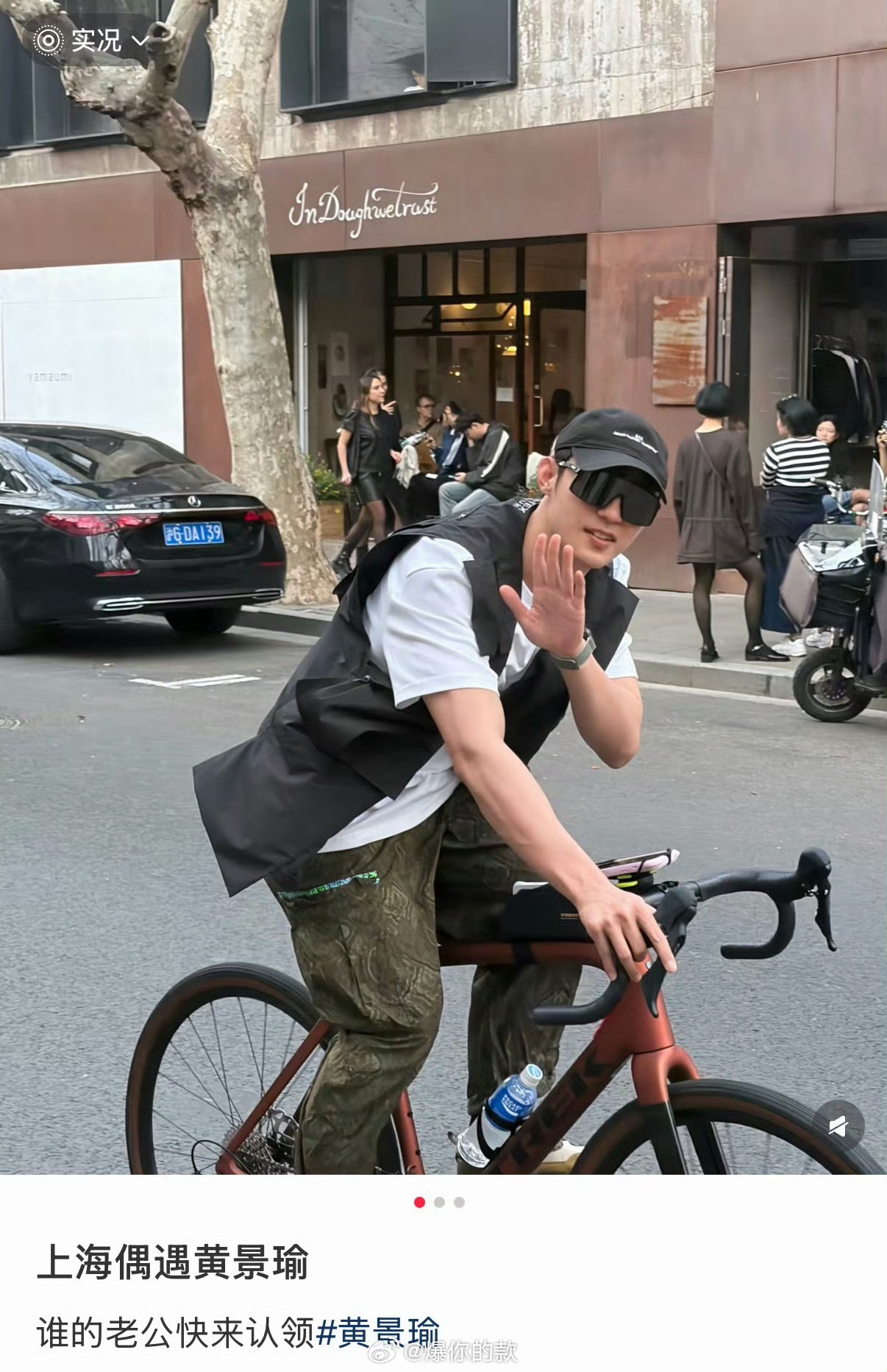网友上海偶遇黄景瑜骑车网友偶遇黄景瑜喝咖啡了上海街头偶遇骑行系男神,慵懒风直接拉满✨