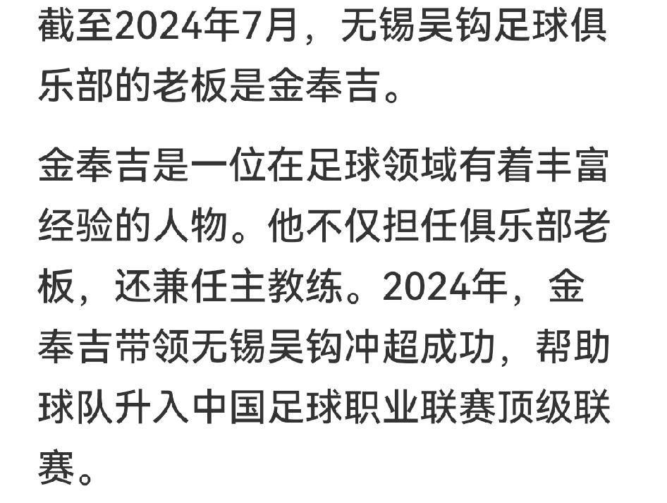 呵呵,不仅仅是中超在逆天,看看中甲积分榜,去年还在踢中乙的无锡吴钩和广西恒宸竟冲进了前三。 特别是韩国人金奉吉执教的无锡队,不仅三战全胜,一枝独秀雄霸榜首,还以7个净胜球遥遥领先。而上赛季冲超功亏一篑的广州影豹已退居第五,降班马长春亚泰、梅州客家更是在前10连踪影都不见。 搜了一下,金奉吉还是无锡吴钩的老板,球队本赛季大肆买买买后实力大增,不仅给中国职业足球保住了韩味,还很可能为江苏球队重返中超补天……