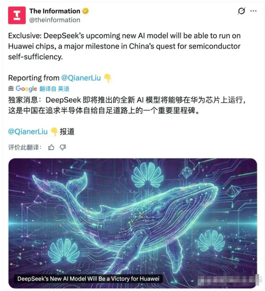 国产AI芯片逆袭!DeepSeek V4弃英伟达选华为,中国AI不再被“卡脖子”? DeepSeek下一代旗舰模型V4直接“硬刚”行业惯例——**优先适配华为昇腾950PR芯片,不选英伟达CUDA!**🔥 这意味着国产芯片首次扛起万亿级大模型的大旗,堪称AI界的“自主化宣言”!🚀 划重点: 1. 历史性选择 ✅ DeepSeek V4果断“抛弃”英伟达,全力适配华为芯片。更牛的是,实测显示:在国产芯上的推理性能已逼近英伟达优化版! 这波操作直接打破“国产芯不行”的偏见。 2. 技术硬核 🧠 ○ 万亿参数MoE架构:模型由多个“专家模块”动态协作,算力更高效。 ○ 黑科技加持:mHC注意力机制+Engram记忆系统,让模型既聪明又“记性好”。 3. 巨头力挺 💵 阿里、字节、腾讯已疯狂下单华为芯片,提前锁定算力资源。大佬们用实际行动投票:国产方案,靠谱! 4. 发布时间 📅 预计4月中下旬亮相,成败在此一举! 为啥这事儿这么炸? ● 破局“卡脖子” 🤛 一旦验证华为芯片能跑通顶级大模型,中国AI将彻底摆脱对英伟达的依赖,堪比芯片国产化的“临门一脚”! ● 改写全球格局 🌍 若国产芯成功,英伟达的AI算力垄断将被撕开大口子,中国AI自主崛起迎来关键转折点。 ● 信心爆棚 🎉 这是AI模型公司首次主动绕开英伟达,选择国产芯片,意义堪比“国产替代的里程碑”。 网友热议: ● “支持派”:“国产芯片站起来了!终于不怕被制裁了!” ● “技术党”:“性能真能媲美英伟达?等实测数据!” ● “吃瓜群众”:“这波是华为赢麻了,英伟达要慌了?” 一句话总结: 当万亿级AI模型跑在国产芯片上,中国AI的“自主之路”终于迎来曙光!✨ 信息来源:DeepSeek公告、华为技术文档、科技媒体报道 2026.4 ;国产芯跑万亿模型 DeepSeekV4适配华为 破局英伟达依赖