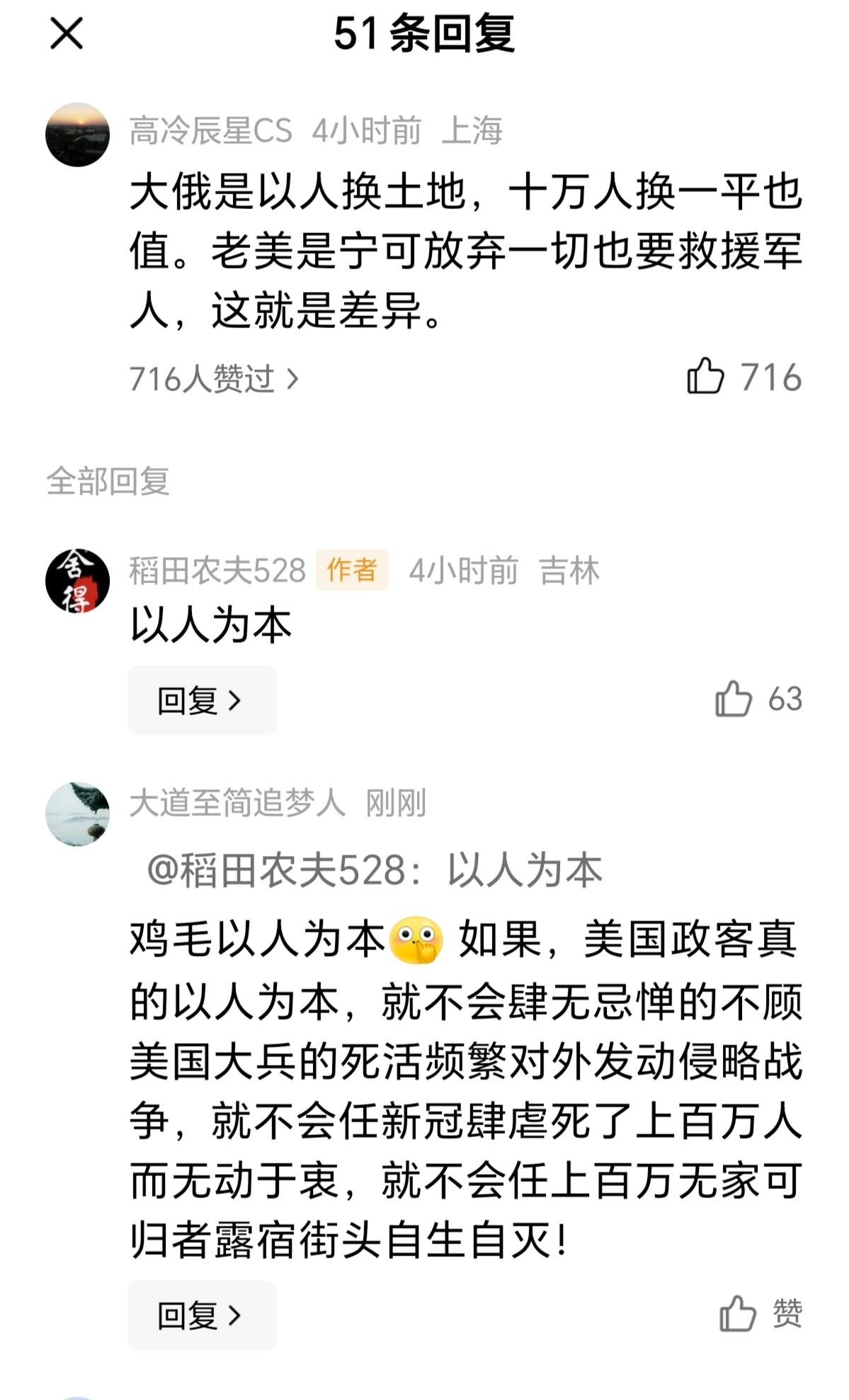 别把美军救援飞行员此举说的多么高大上,本身就是一场非正义的战争,是侵略者,是在别人的国家是在别人土地上,救援被别人反击击落的战机的飞行员,这有什么值得称颂的?说是救援飞行员,其实是不想飞行员被别人俘虏,否则很没面子,也怕飞行员被俘虏后会泄露一些机密;击毁所有救援设备包括被击落战机和运输机直升机,无非是怕别人获得了通信机密和一些技术性的东西,相当于毁灭所有罪证,也间接证明,这些参与救援的设备之前受到了伊朗火力打击,无法逃离伊朗,美军才不得不击毁所有救援设备,也就是说,美军宁愿击毁所有参与救援的设备,也不能让伊朗得到这些设备上的通信机密以及一些技术性的东西为伊朗所用。 如果,美国政客真的以人为本,就不会肆无忌惮的不顾美国大兵的死活频繁对外发动侵略战争,就不会任新冠肆虐死了上百万人而无动于衷,就不会任上百万无家可归者露宿街头自生自灭!