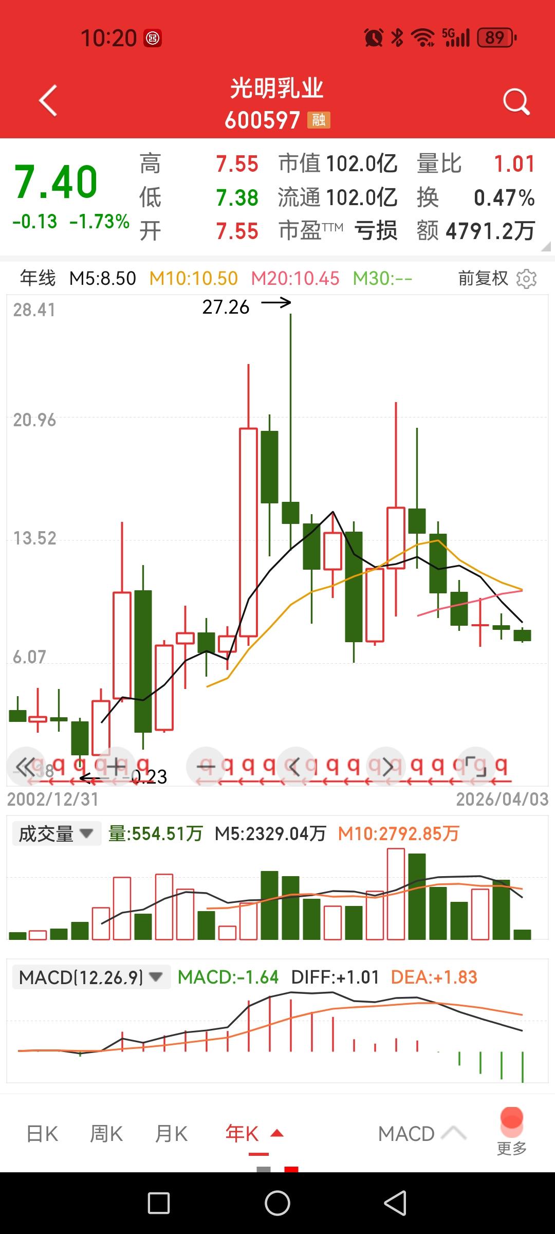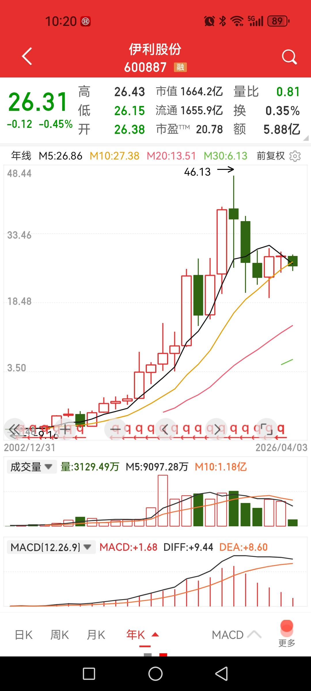 伊利、蒙牛、光明乳业,今年两个下跌一个上涨。 光明乳业,亏损1.49亿;蒙牛,盈利65.6亿(同比增长1378%);伊利,盈利104.3亿(同比下降4.03%)。 2026年至今,蒙牛涨17.7%,光明乳业下跌8.5%,伊利下跌8%。 蒙牛营收822亿,利润65.6亿,伊利营收905亿,利润104亿。前者销售毛利率39.9%,净利率8%,后者销售毛利率35.3%,净利率11.53%。盈利能力稍有差异。但蒙牛是业绩大增,因而股价是震荡上扬,伊利是业绩下滑故而股价下跌。 所以,同类企业股价走势不是看你挣钱多少而是看你是否增长。
