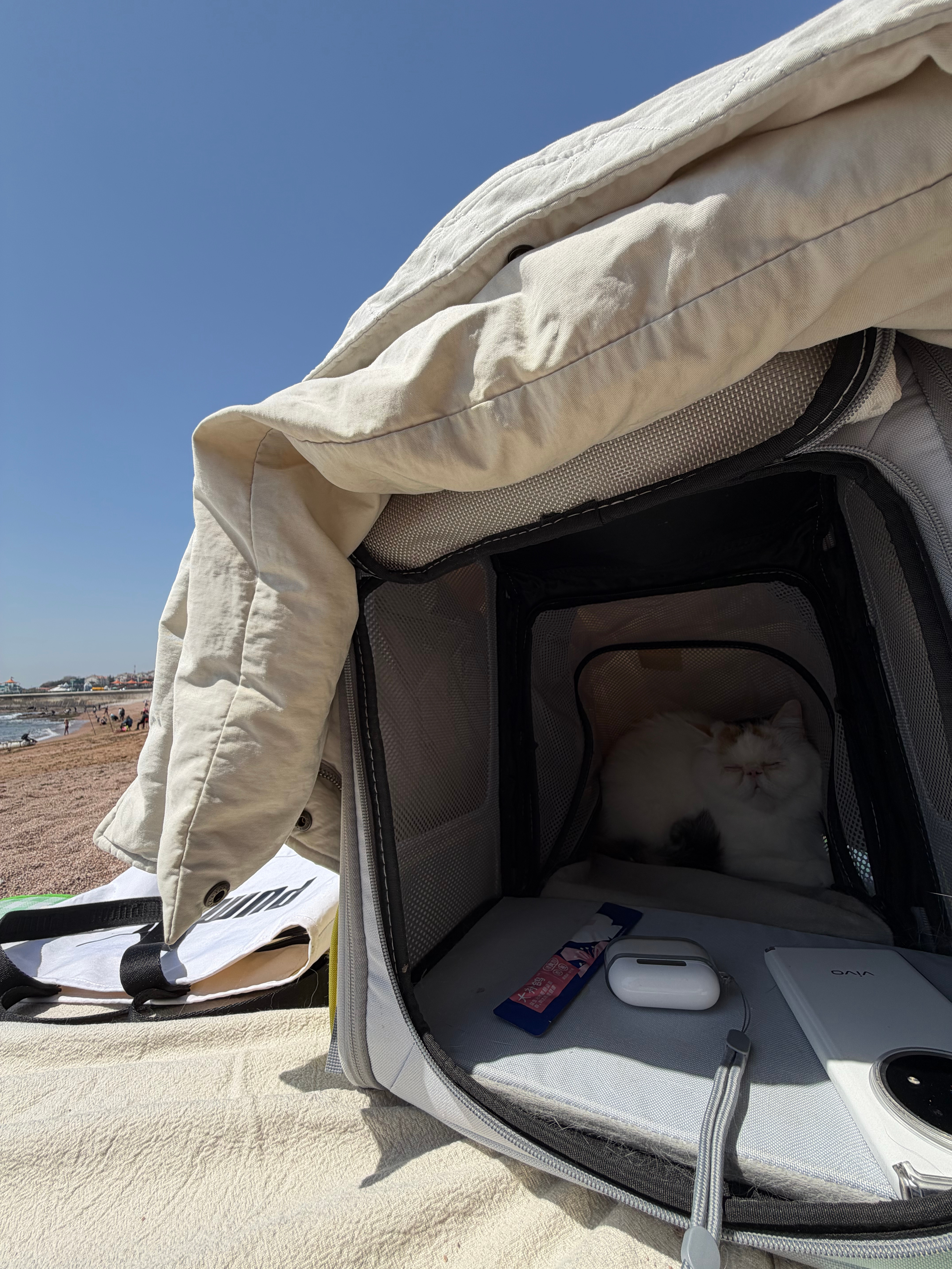 带嫡长女来海边晒太阳补充维生素D谁曾想孩子社恐躲在安全屋里一动都不动那我就独享这美好的沙滩大海和阳光啦午安玛卡巴卡